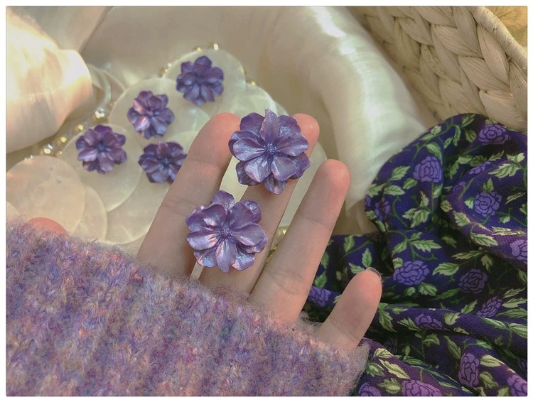 高级感紫色花朵耳钉女2024年新款温柔法式耳饰复古港风无耳洞耳夹 English | 投诉
