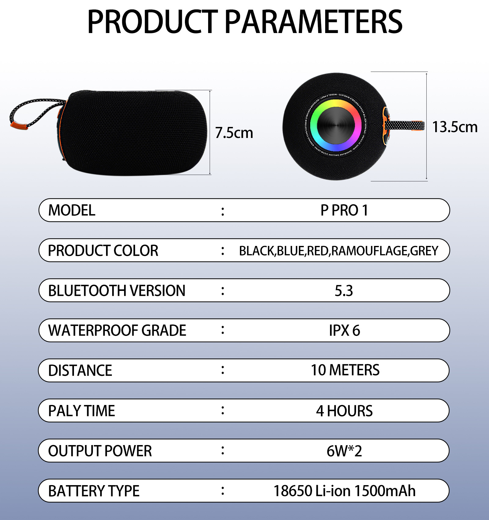 功能:BT/TF/TWS/FM/氛围灯