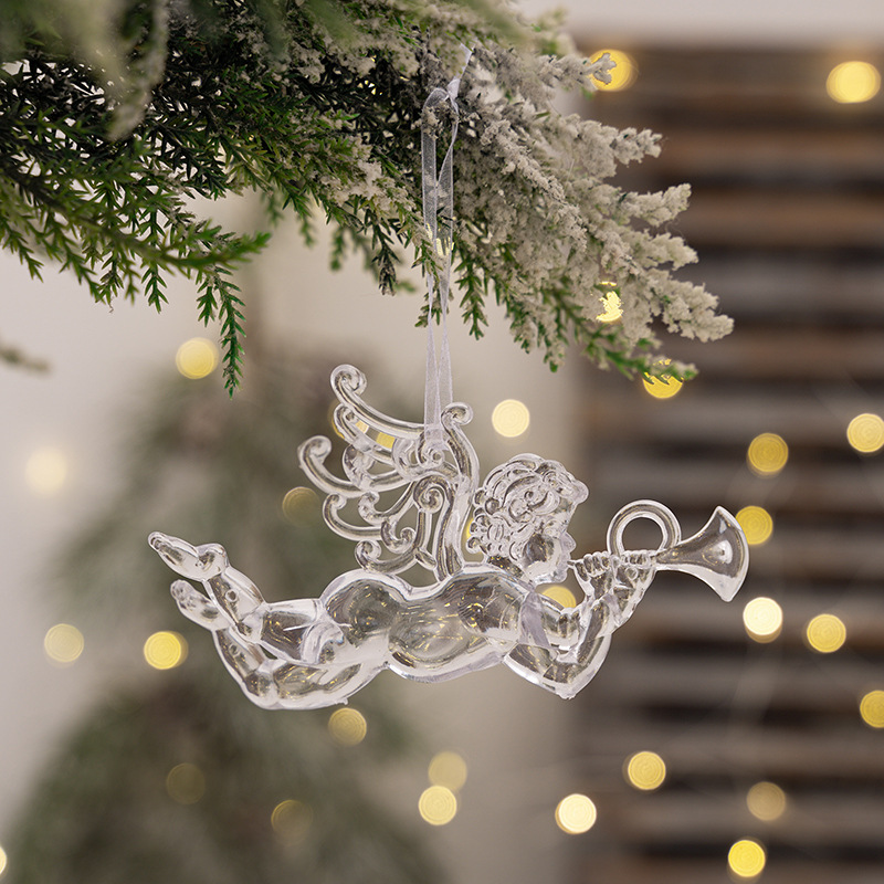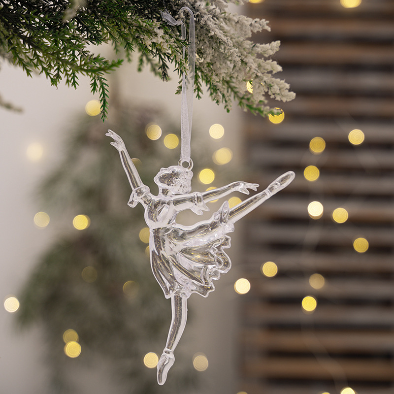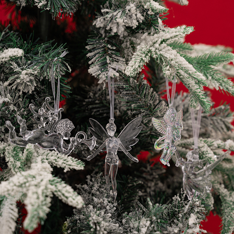 4款透明天使挂件圣诞节装饰透明芭蕾女孩丘比特挂件 亚克力树挂饰