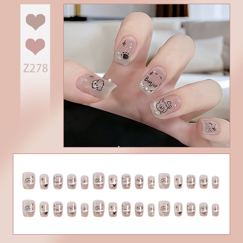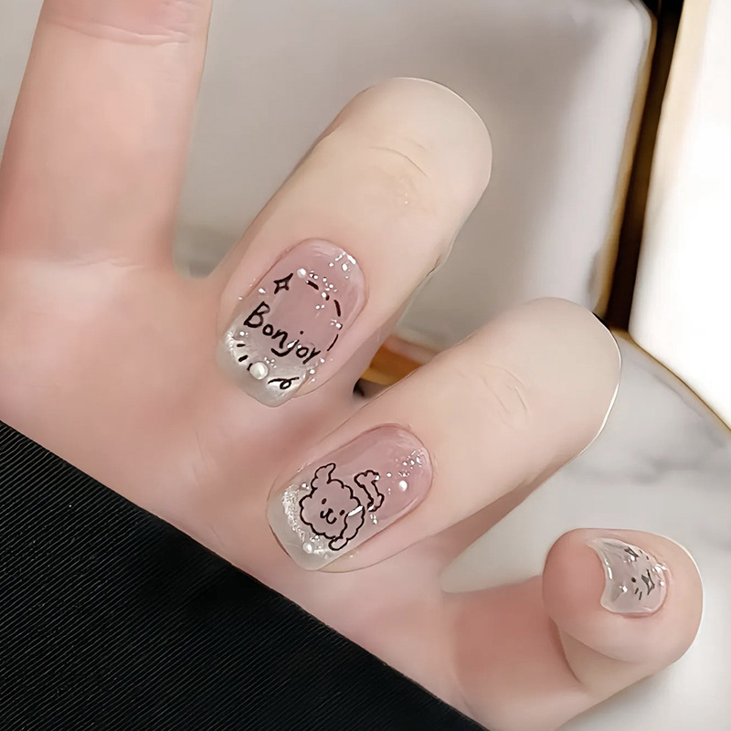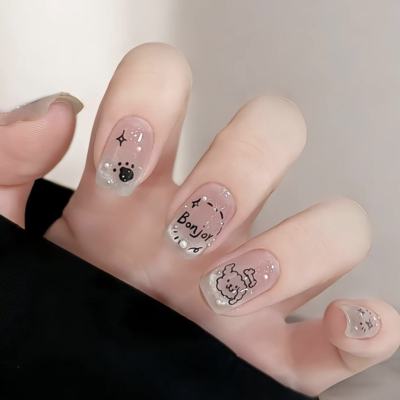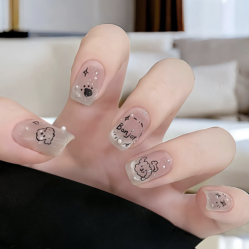 手工穿戴甲涂鸦珍珠小狗美甲贴片法式猫眼穿戴甲片成品假指甲批发 English | 投诉