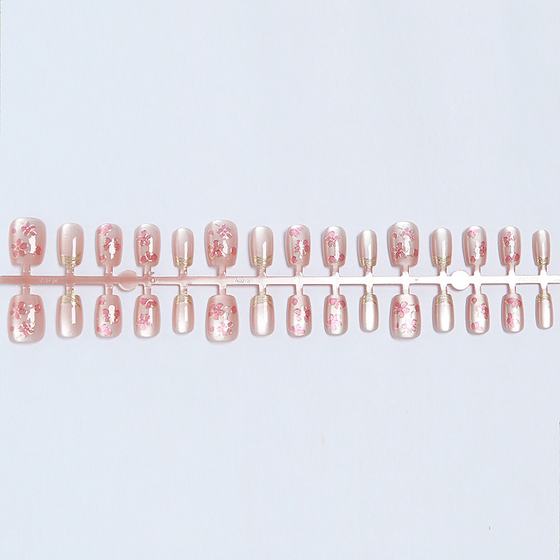 穿戴甲短款法式鎏金猫眼粉色花朵美甲甲片高级感手工穿戴甲片30片 English | 投诉