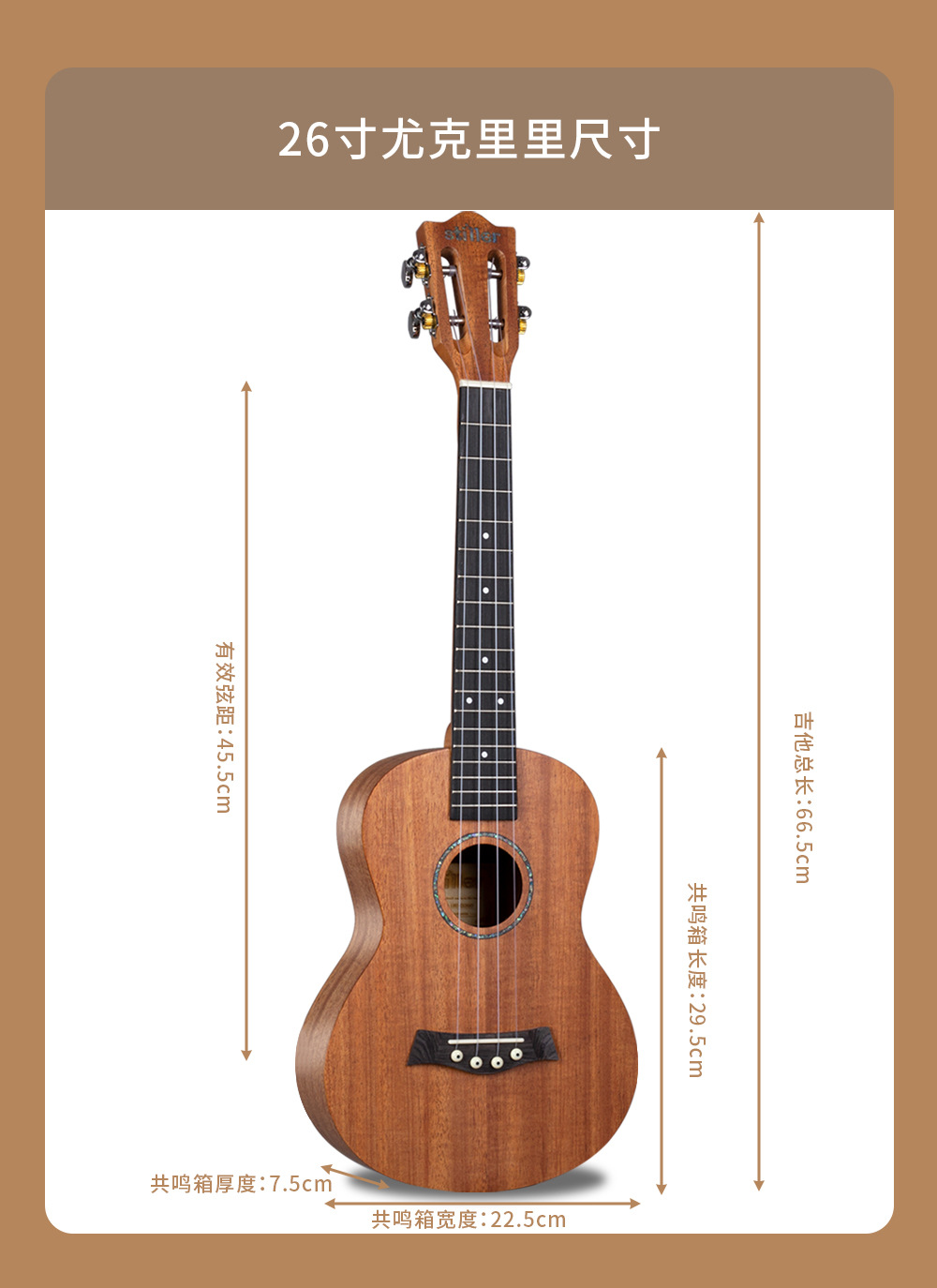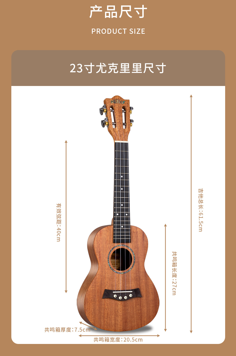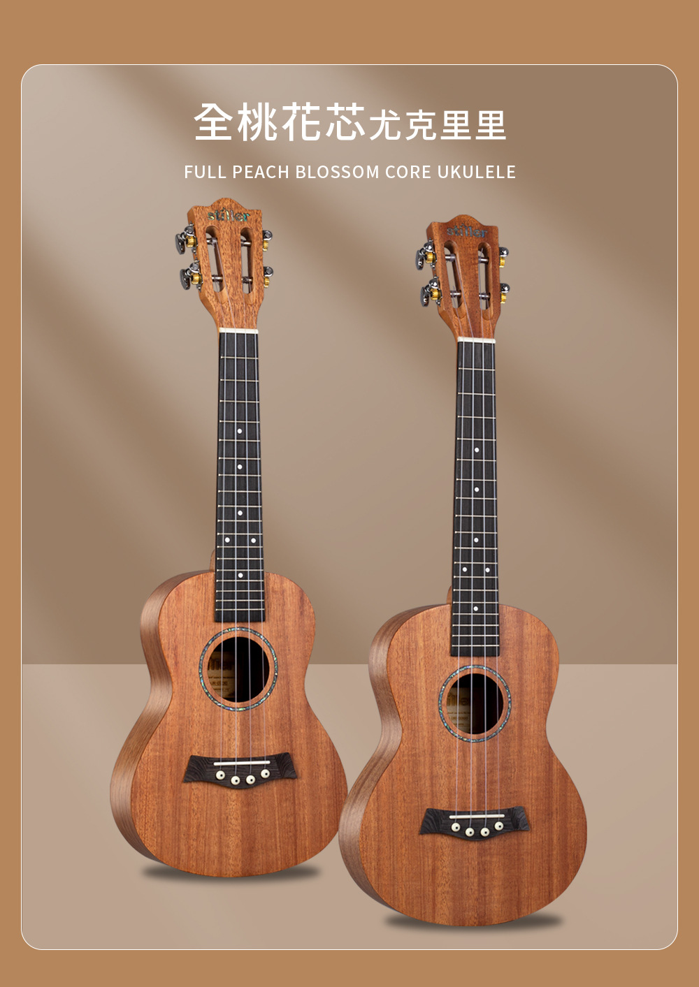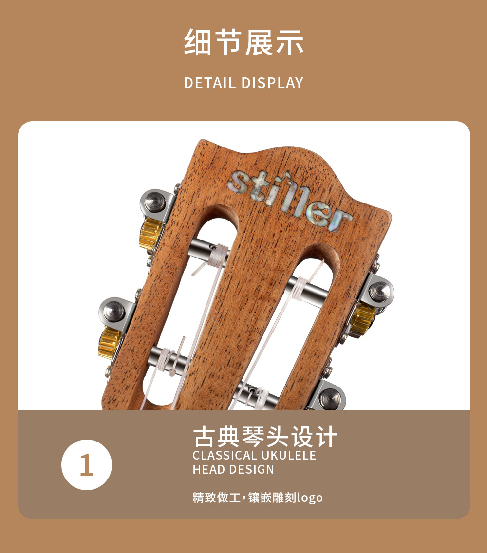 产品类别: 尤克里里 货号: D230260 品牌: STILLER/斯蒂勒 型号: D230 规格: 23寸/26寸 包装: 纸箱包装 产地: 中国贵州 适用场景: 音乐乐器 颜色: 23寸桃花芯单板,26寸桃花芯单板 有可授权的自有品牌: 是 是否跨境出口专供货源: 是 专利类型: 无 重量: 1.0 kg/台