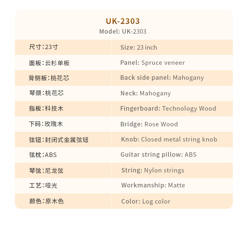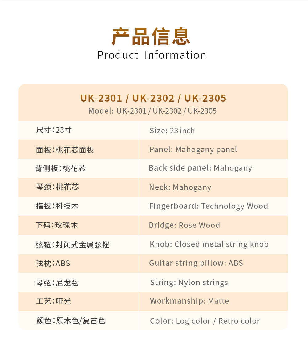 产品类别: 尤克里里 货号: 21寸/23寸 品牌: STILLER/斯蒂勒 型号: 2301 规格: 10把一箱 包装: 纸盒 产地: 中国贵州 适用场景: 音乐乐器 有可授权的自有品牌: 是 是否跨境出口专供货源: 是 专利类型: 无 外贸出口认证: 无 质检报告编号: 无 重量: 1.0 kg/台