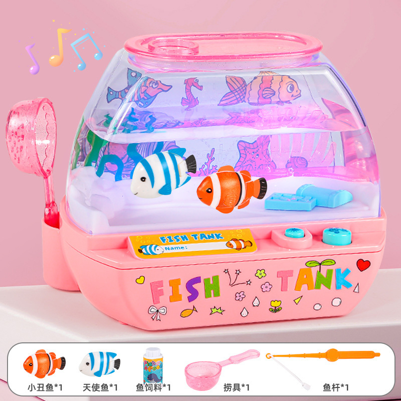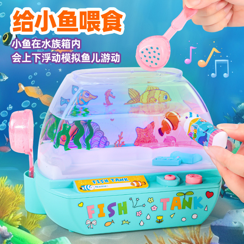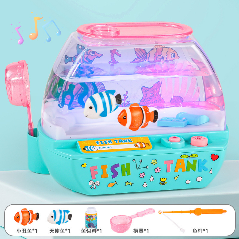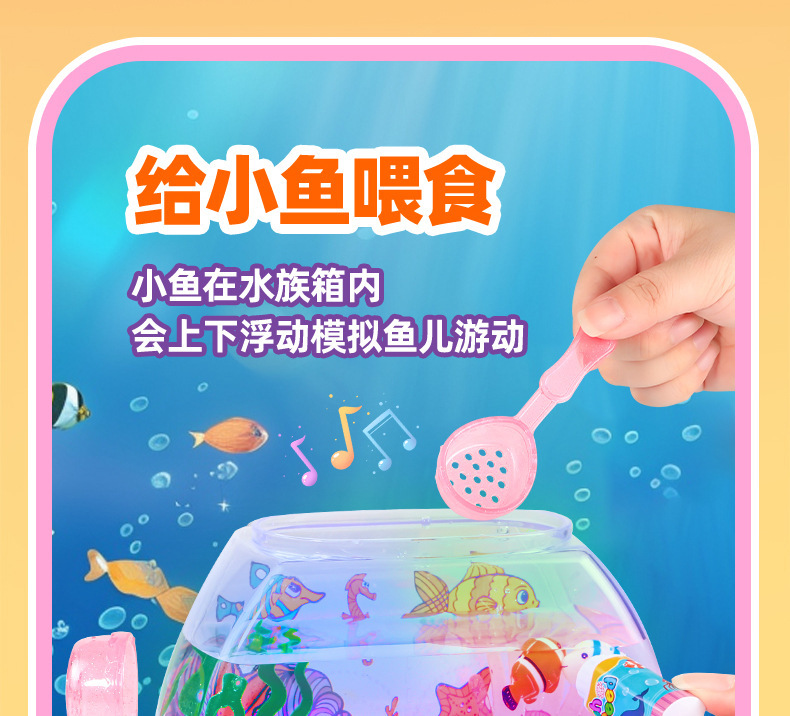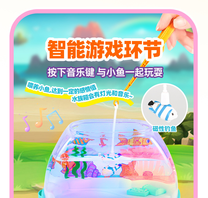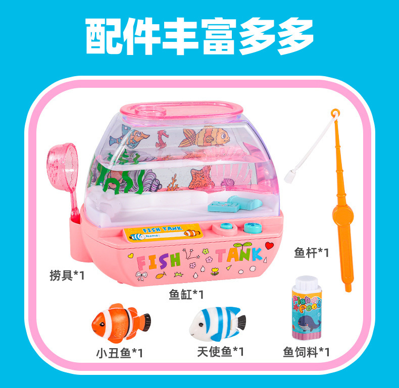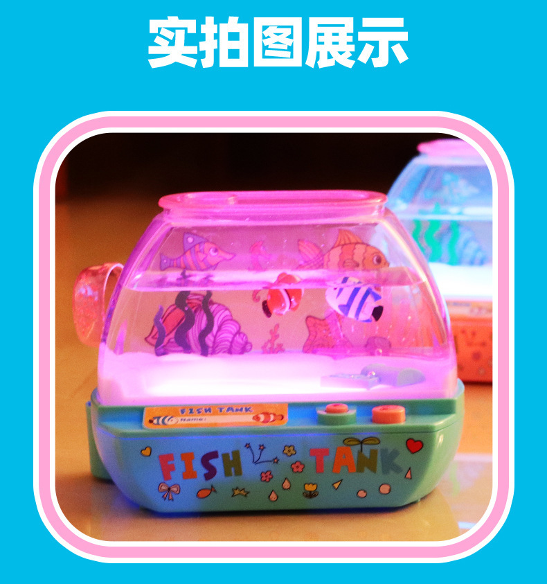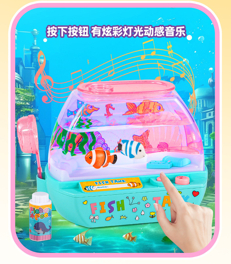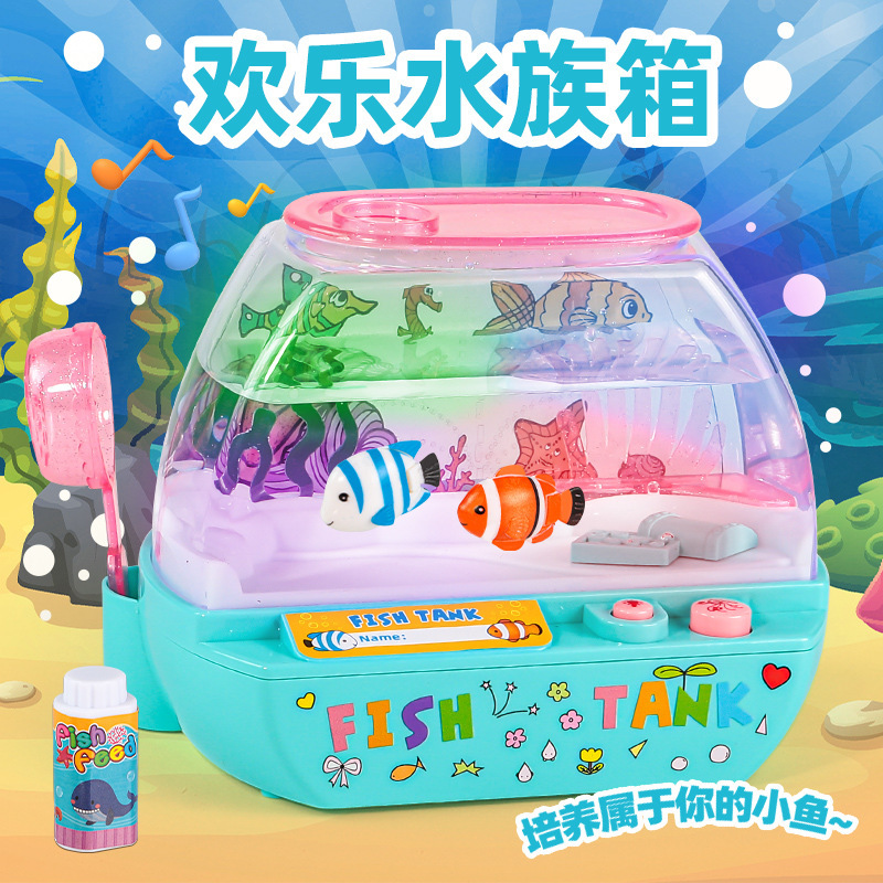 跨境欢乐水族箱儿童仿真鱼缸宝宝养鱼观察电动发光音乐过家家玩具