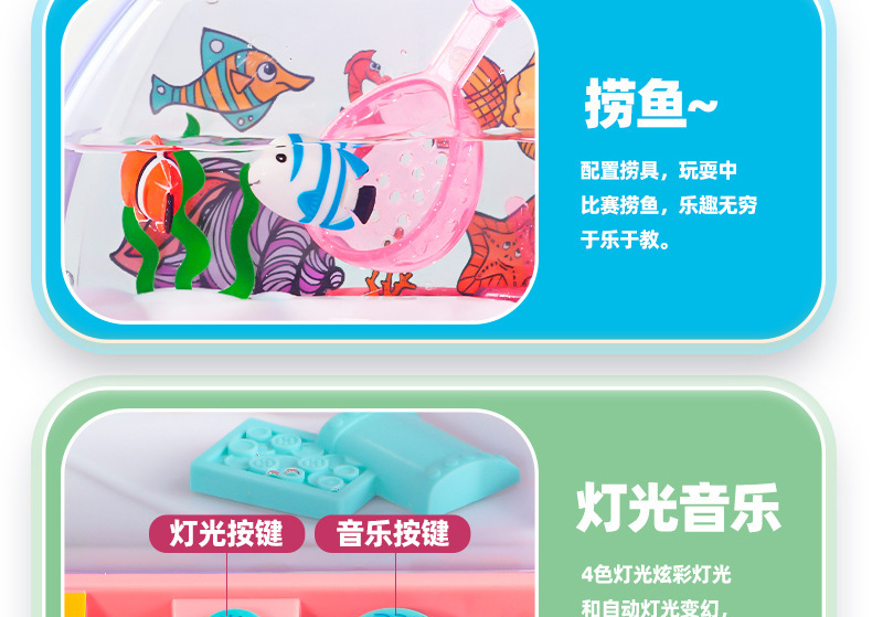 品牌: 其他 货号: zrx123 适用人群: 不限 特色功能: 养鱼 捞鱼 灯光音乐 钓鱼 是否进口: 国产 包装: 彩盒 玩具材质: 塑料/塑胶 是否有动漫形象: 否 是否有导购视频: 是 类型: 仿真喂哺护理 产品类别: 过家家玩具 是否专供外贸: 否 3C配置类别: 14岁以下其它玩具 主要销售地区: 欧洲,南美,东南亚,北美,东北亚 有可授权的自有品牌: 否 是否跨境出口专供货源: 是 适用年龄: 儿童(4-6岁) 重量: 0.5 kg/盒