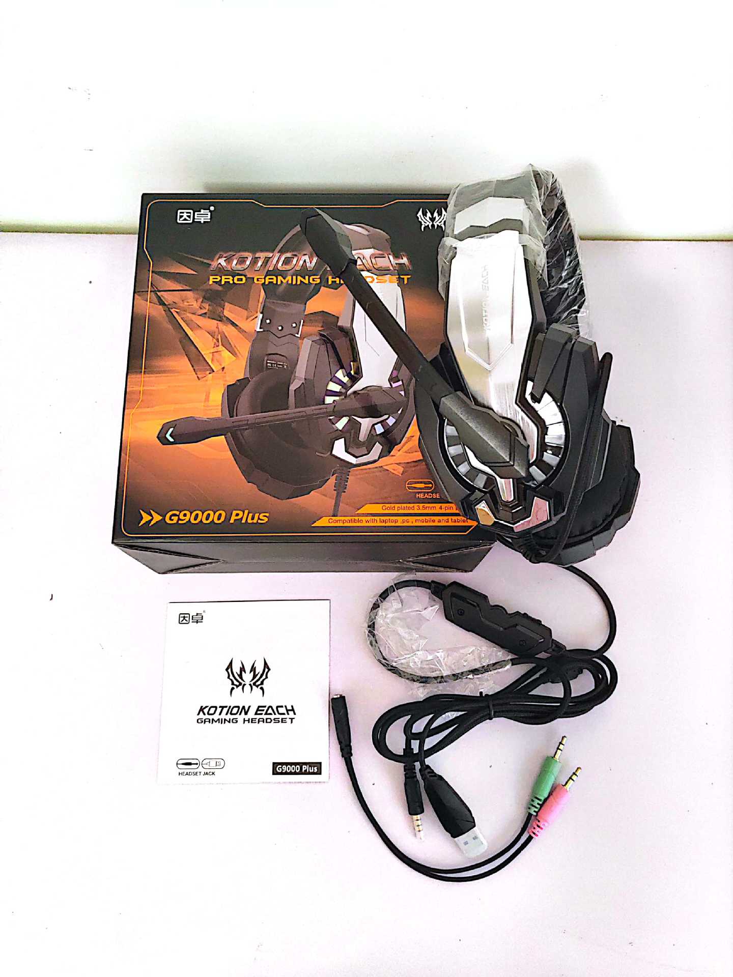 G9000Plus包装清单:耳机*1; 说明书(多种语言)*1; 转接线(可选配)*1; 包装盒*1;