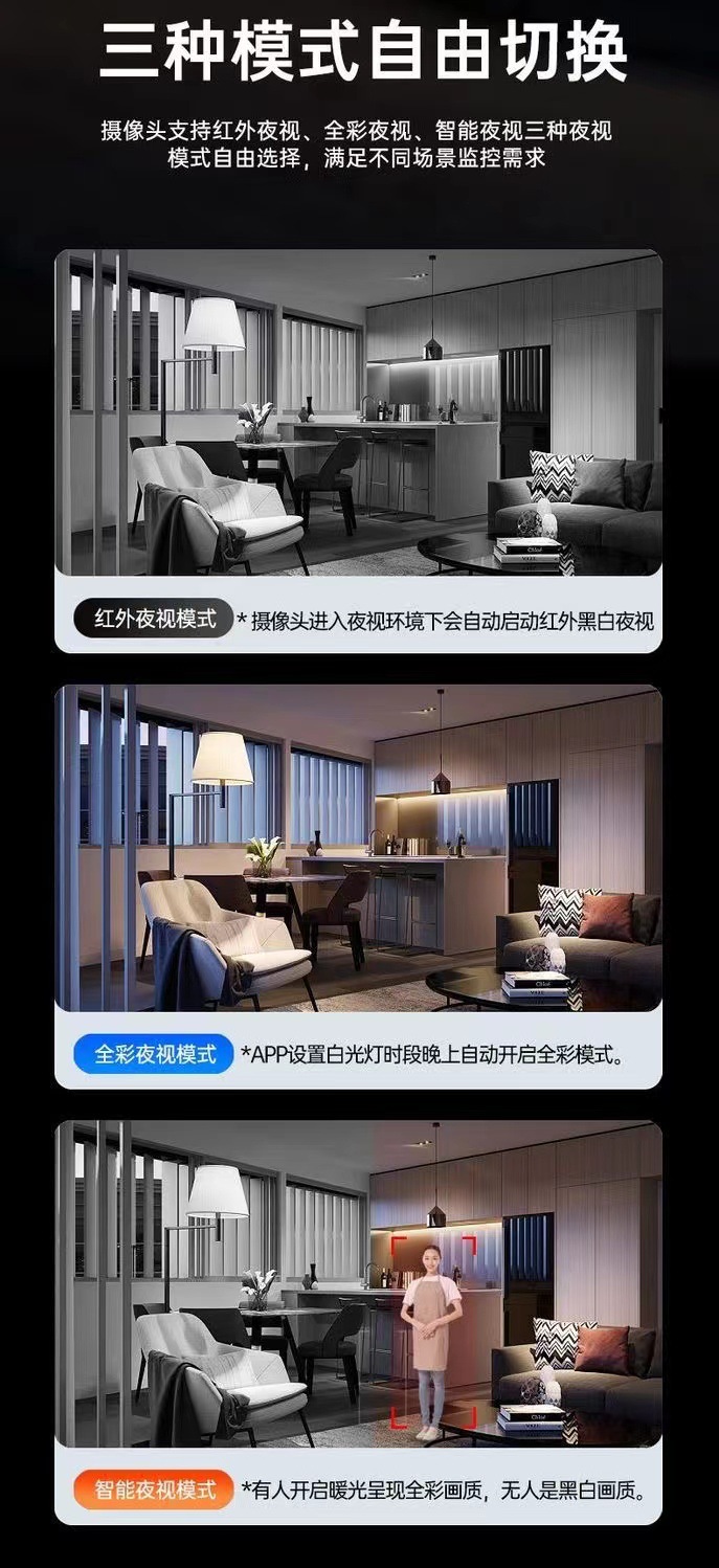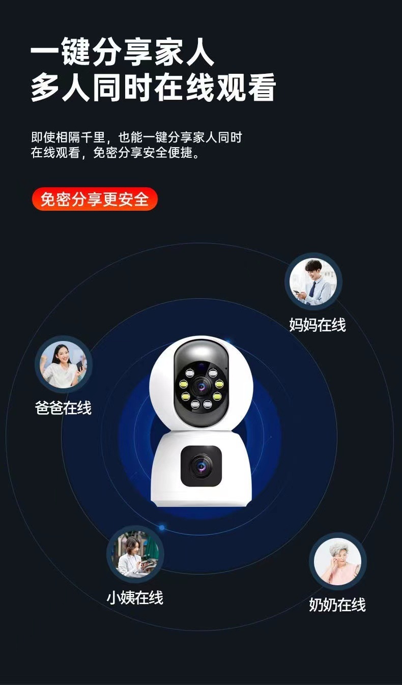 跨境双画面摄像头家用手机无线远程室内监控360度无死角高清夜视 English | 投诉