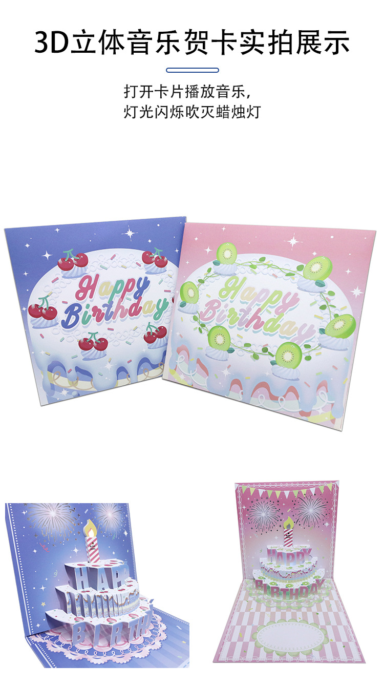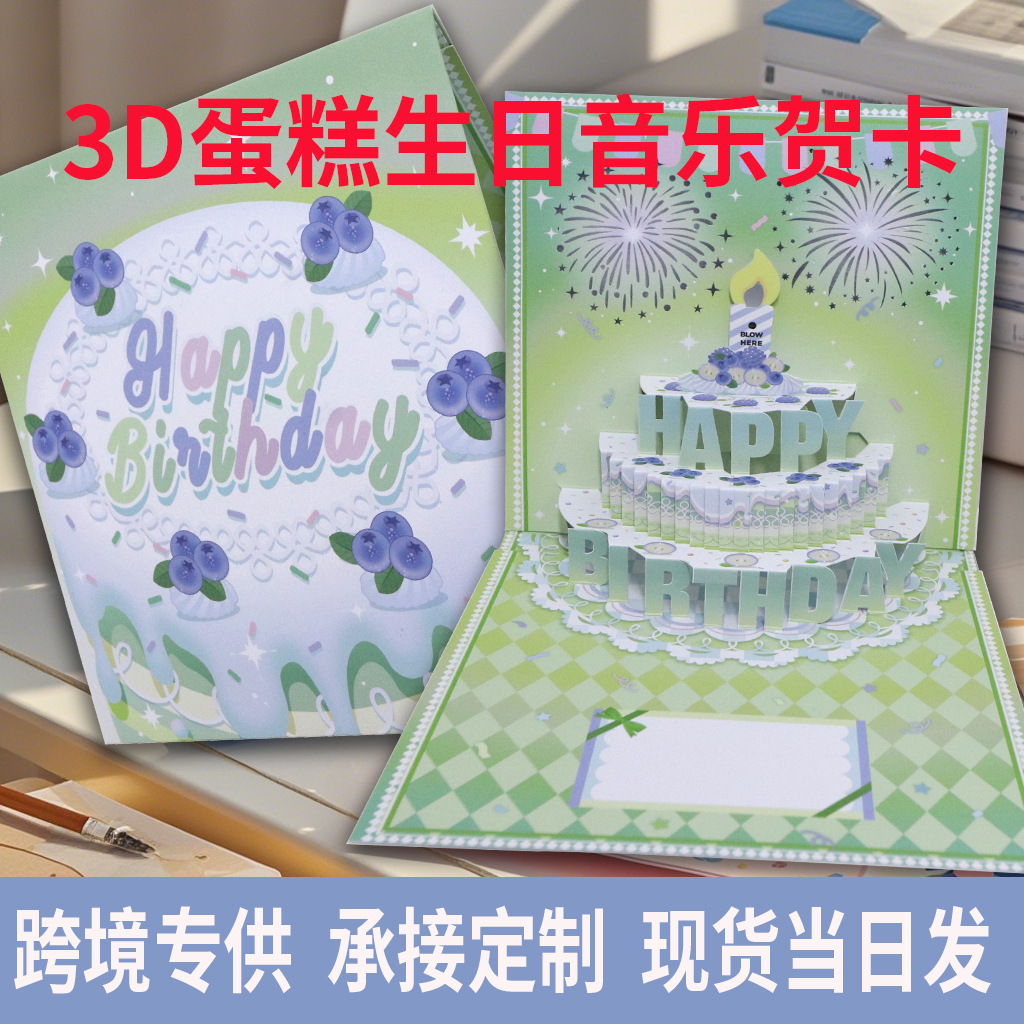 弹出式烟花生日贺卡卡片3D立体贺卡感恩商务创意立体音乐贺卡批发
