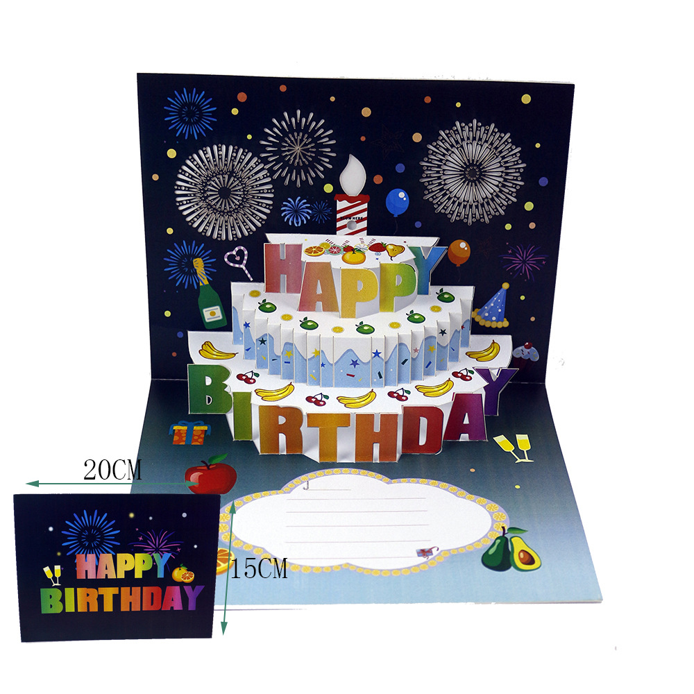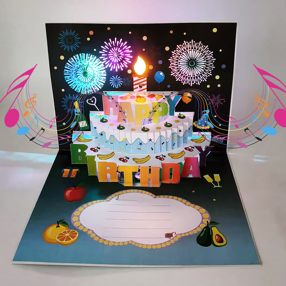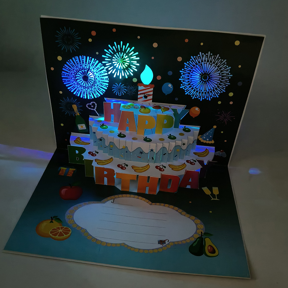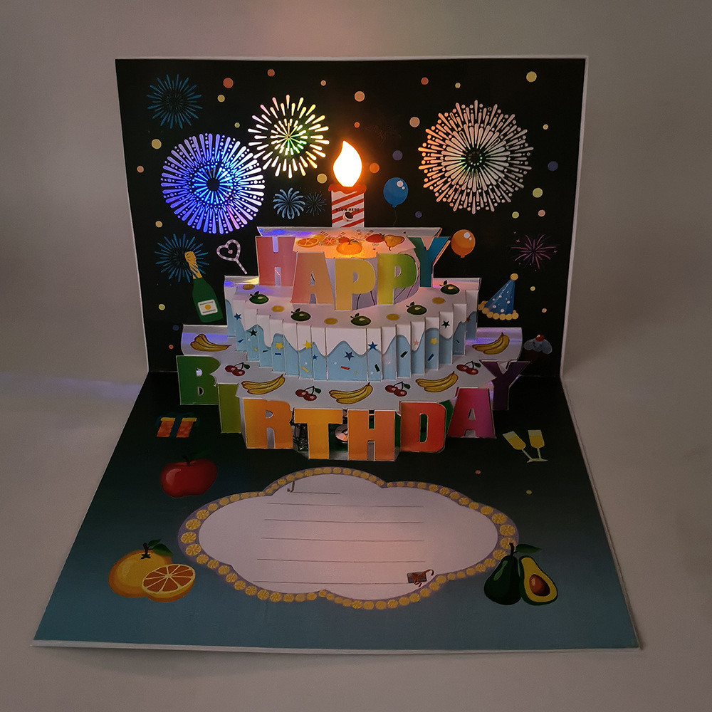 生日蛋糕卡片3D立体贺卡跨境外贸企业员工客户祝福语发光LOGO音乐