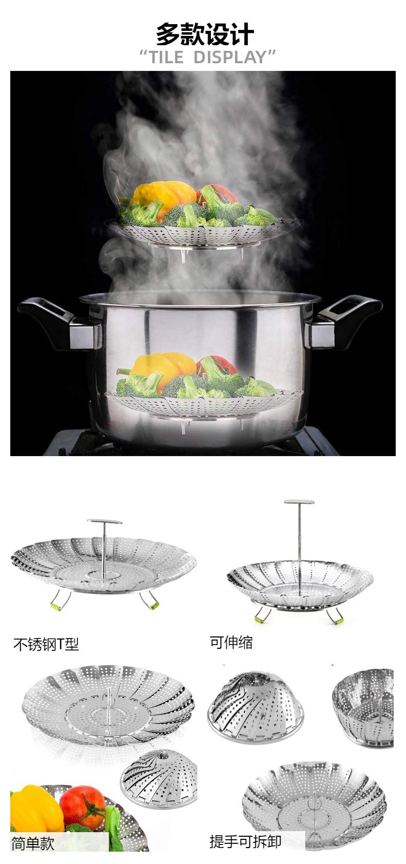 厨房工具家用不锈钢折叠蒸笼架创意蒸屉笼蒸锅多功能加厚一整套 English | 投诉