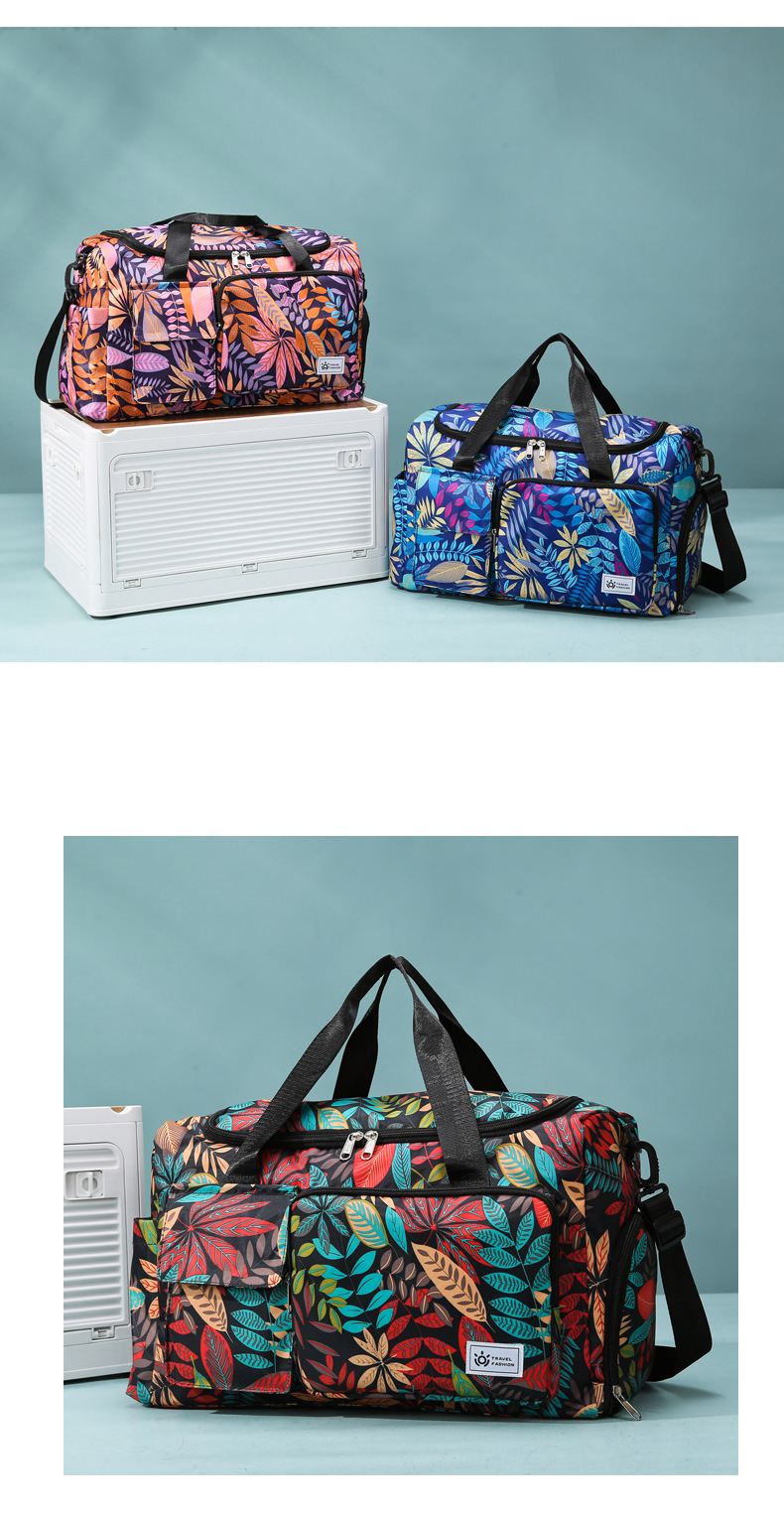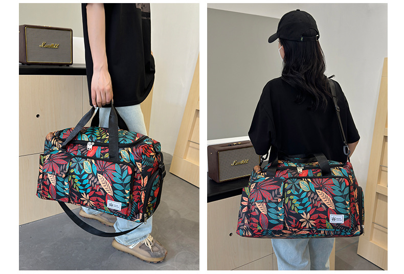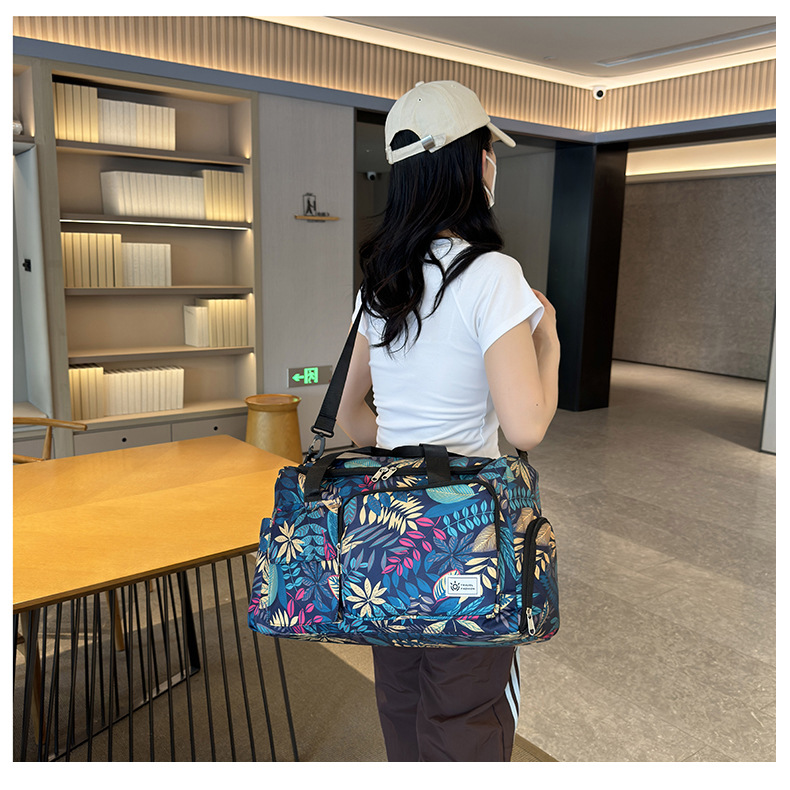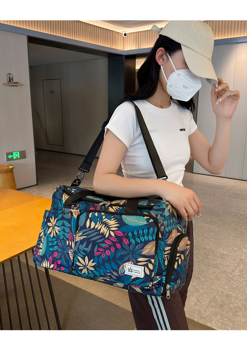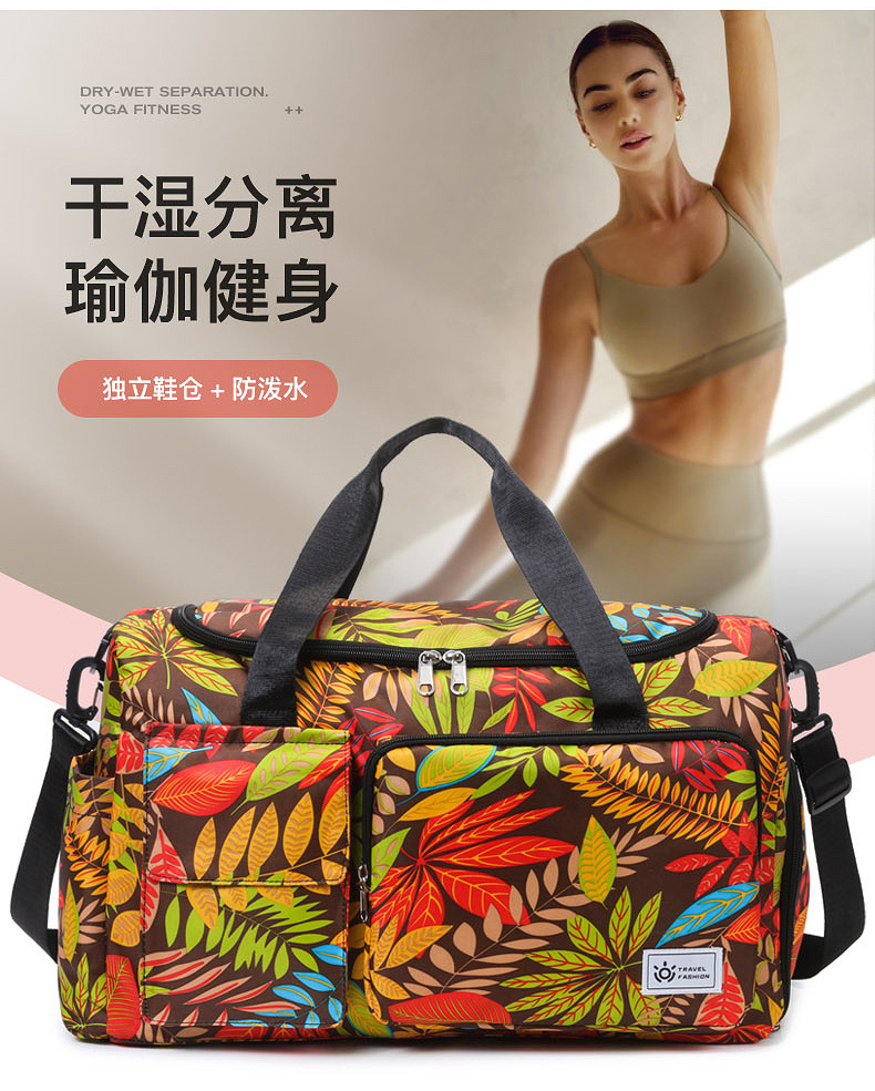 短途旅行包大容量树叶印花休闲行李包女运动健身包干湿分离游泳包 English | 投诉
