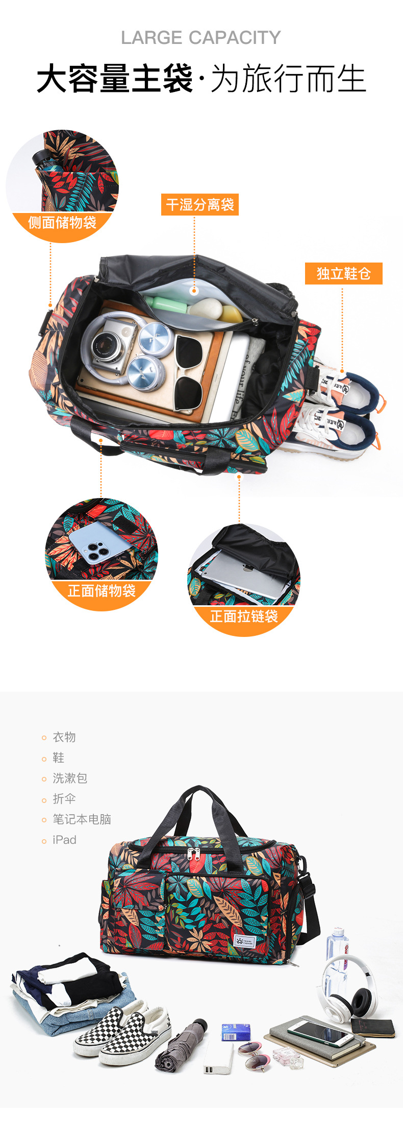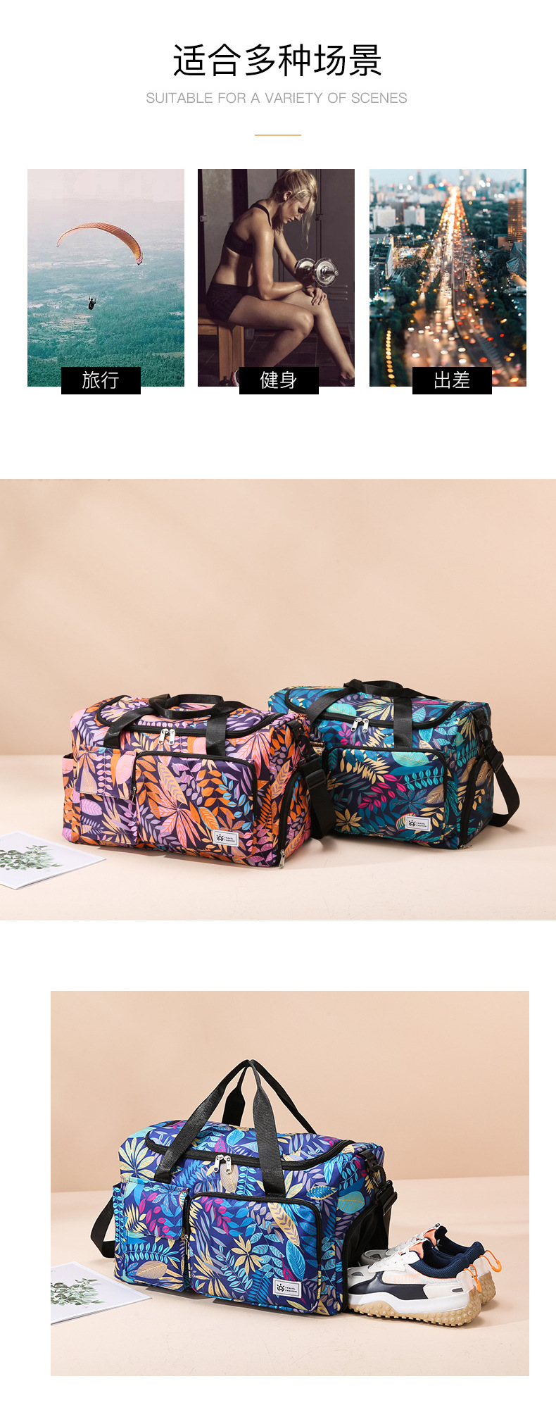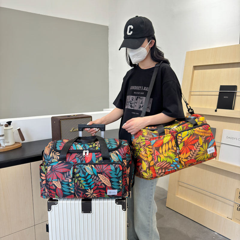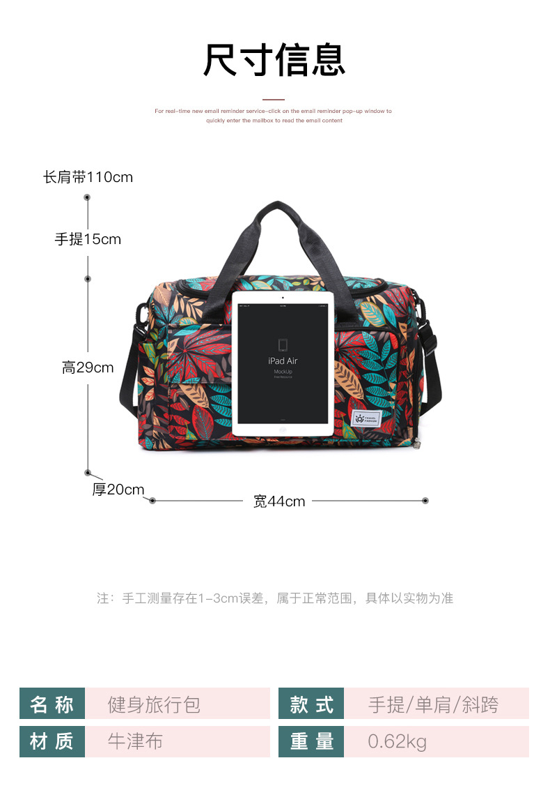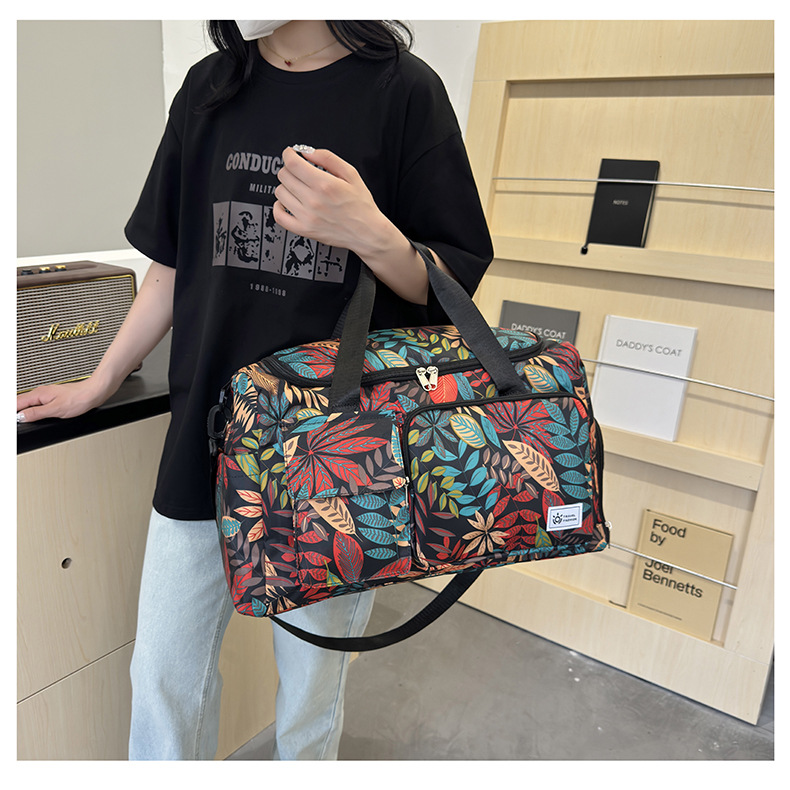 短途旅行包大容量树叶印花休闲行李包女运动健身包干湿分离游泳包 English | 投诉