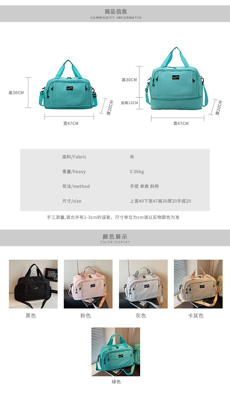新款旅行包女大容量健身包干湿分离运动外出旅游收纳袋衣服行李袋 English | 投诉