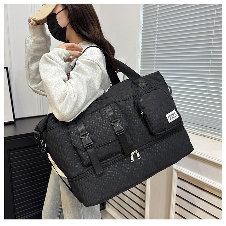 户外旅行干湿分离收纳包手拎纯色多功能行李袋菱格时尚运动健身包