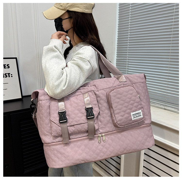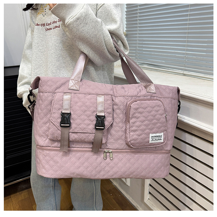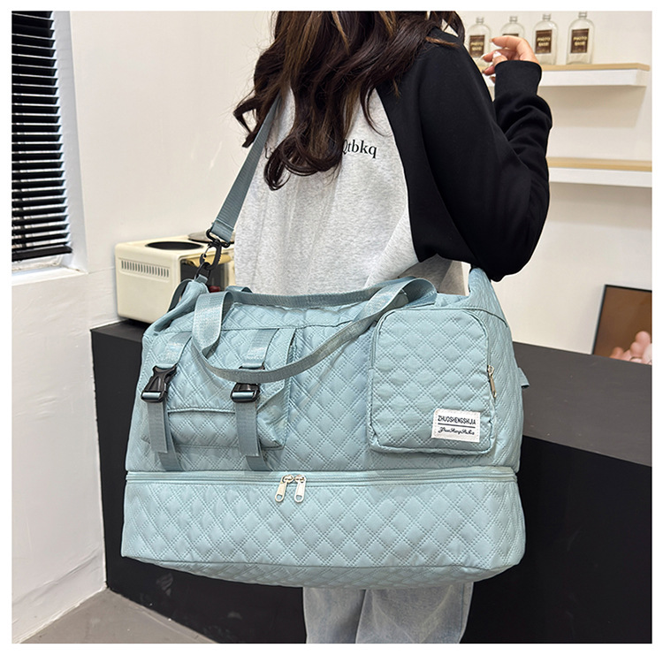 户外旅行干湿分离收纳包手拎纯色多功能行李袋菱格时尚运动健身包 English | 投诉