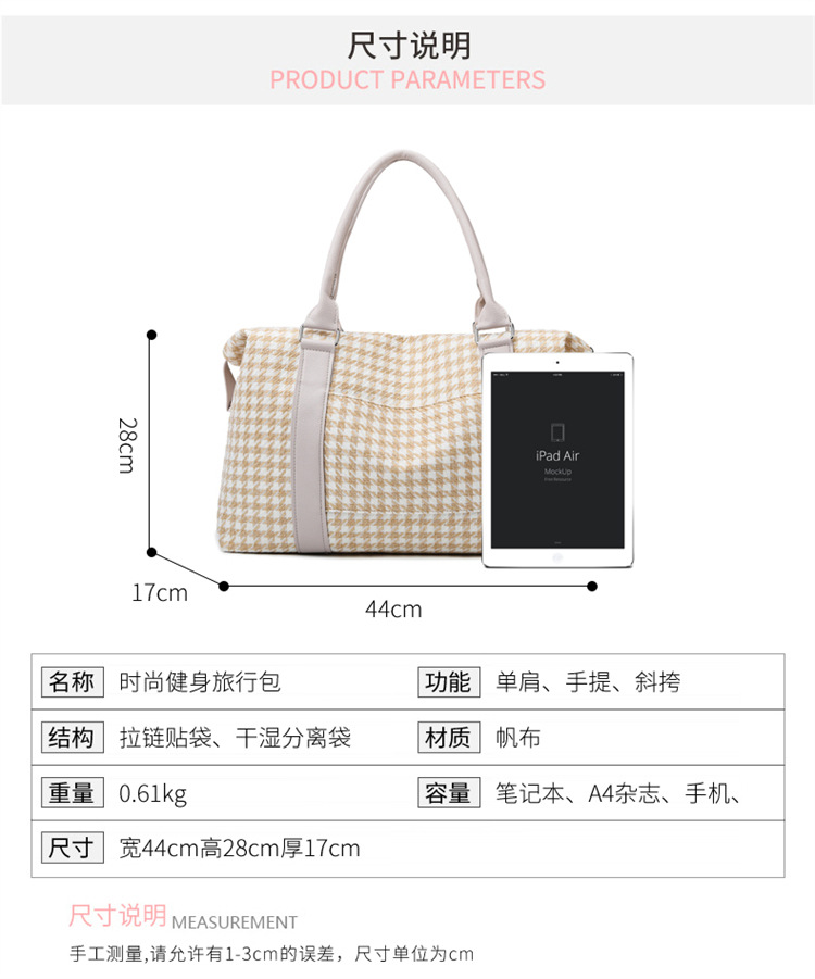 帆布包包女大容量2025新款夏天便携单肩出差行李包质感手提旅行包 English | 投诉