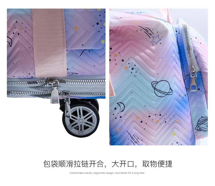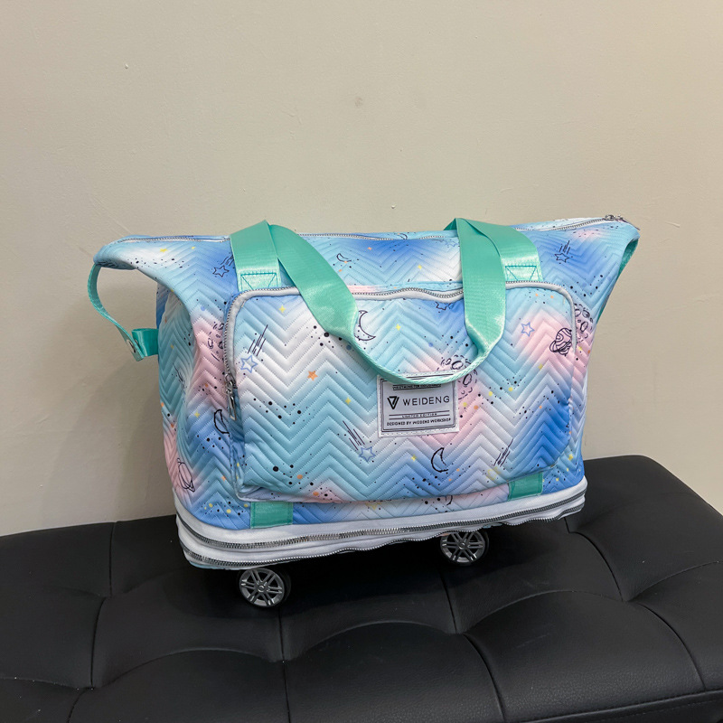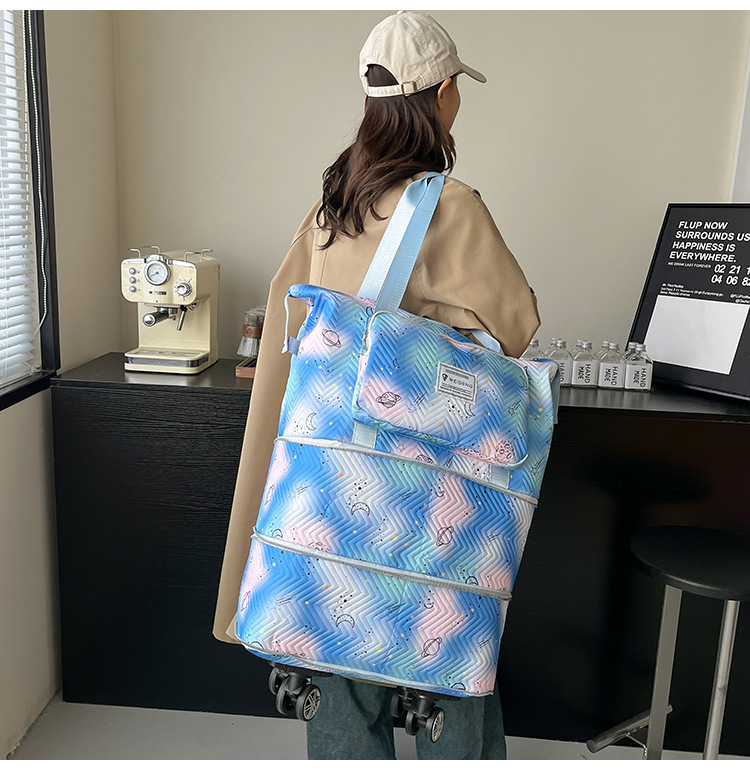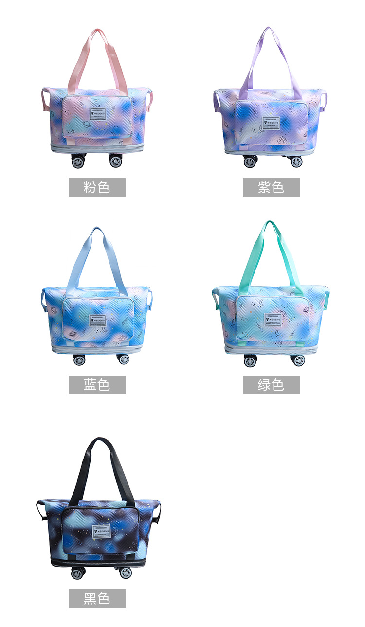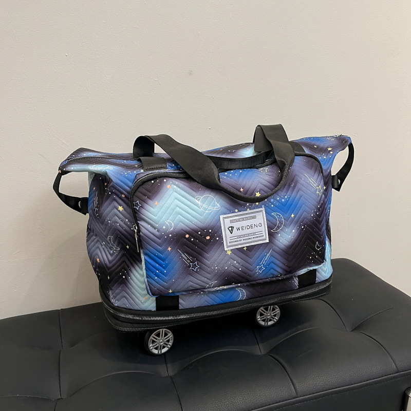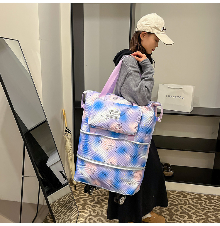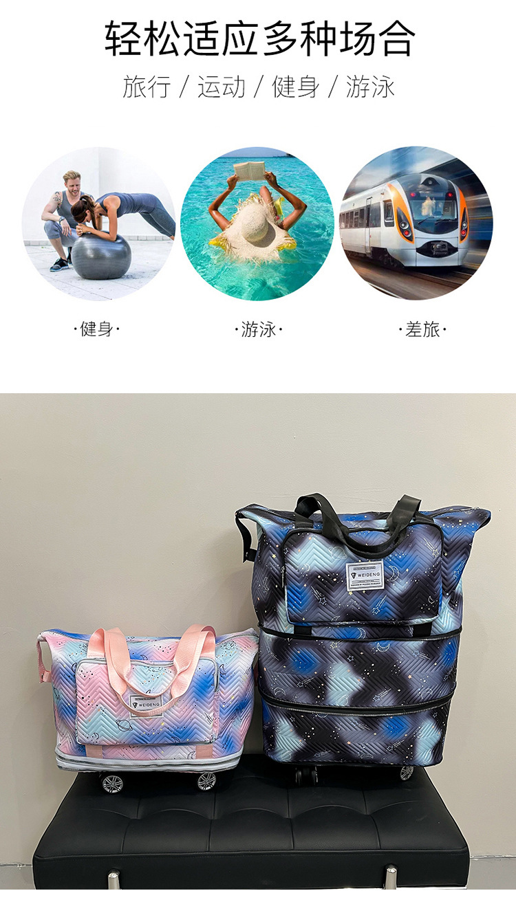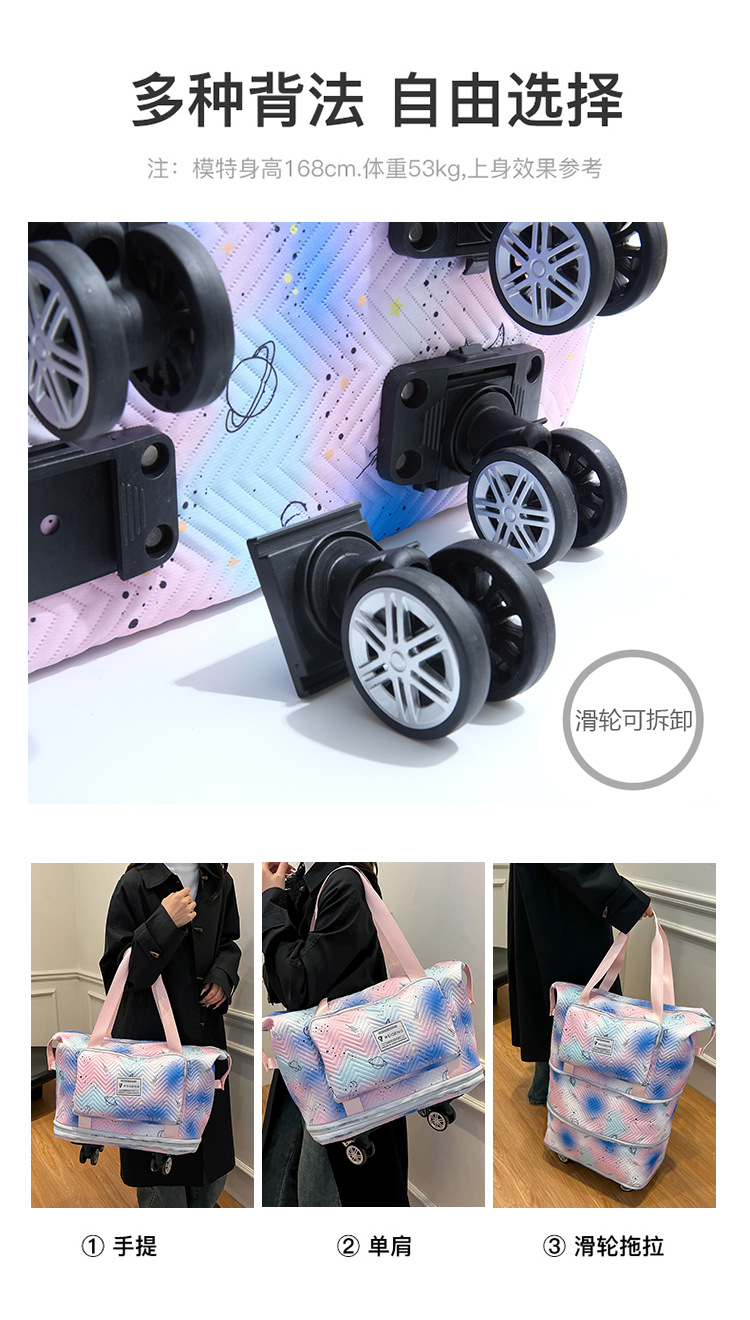 双层扩展超大容量滑轮便携旅行行李包干湿分离清新健身包可套拉杆