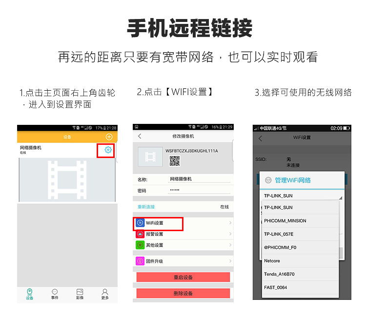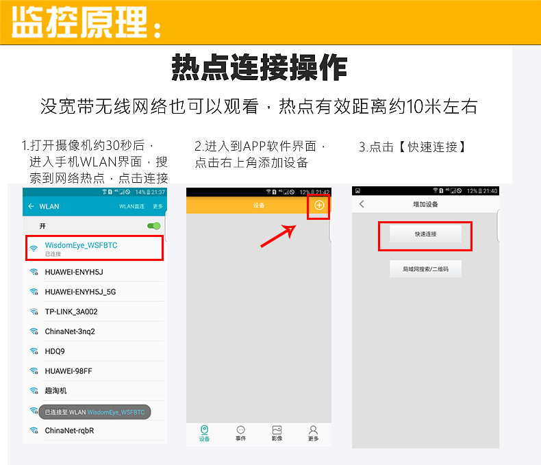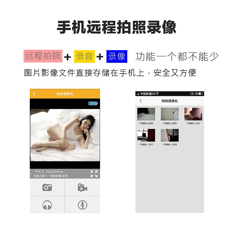 6、支持智能手机和平板电脑、智能电视、PC电脑等设备无线录像,拍照,影音浏览。