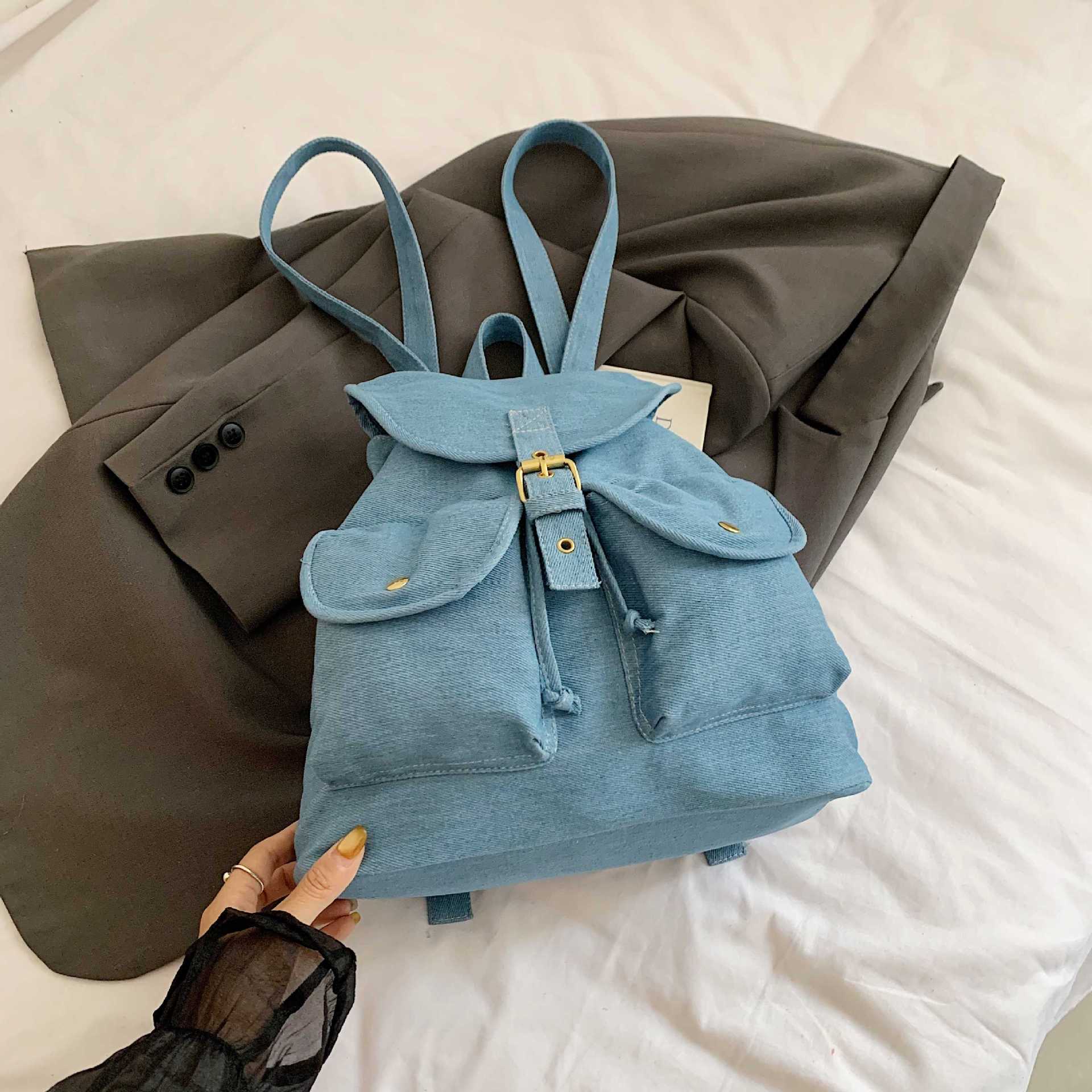 跨境热销牛仔布双肩包女大容量2025新款休闲书包大学生旅游大背包 English | 投诉