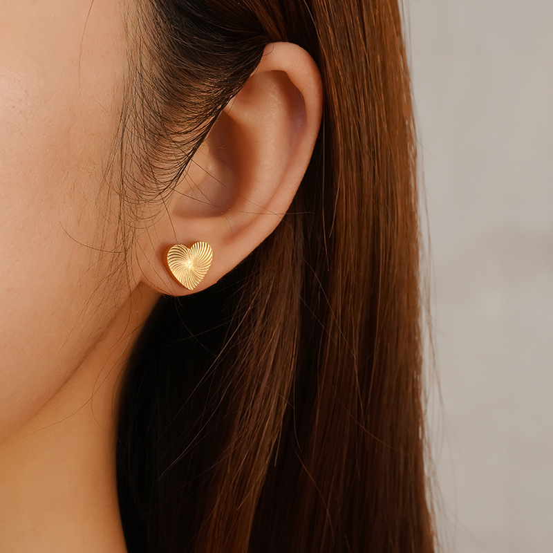 跨境欧美时尚爱心不锈钢耳钉女式潮流批花桃心耳饰 百搭镀18K耳环