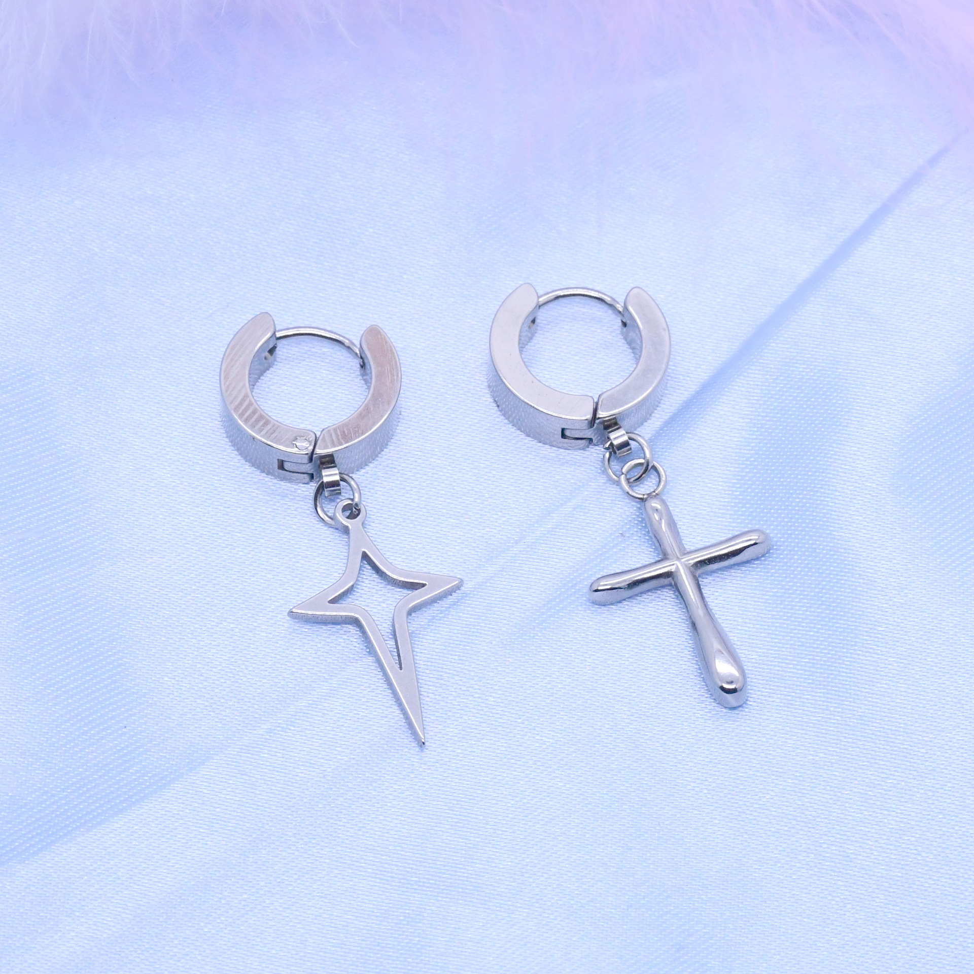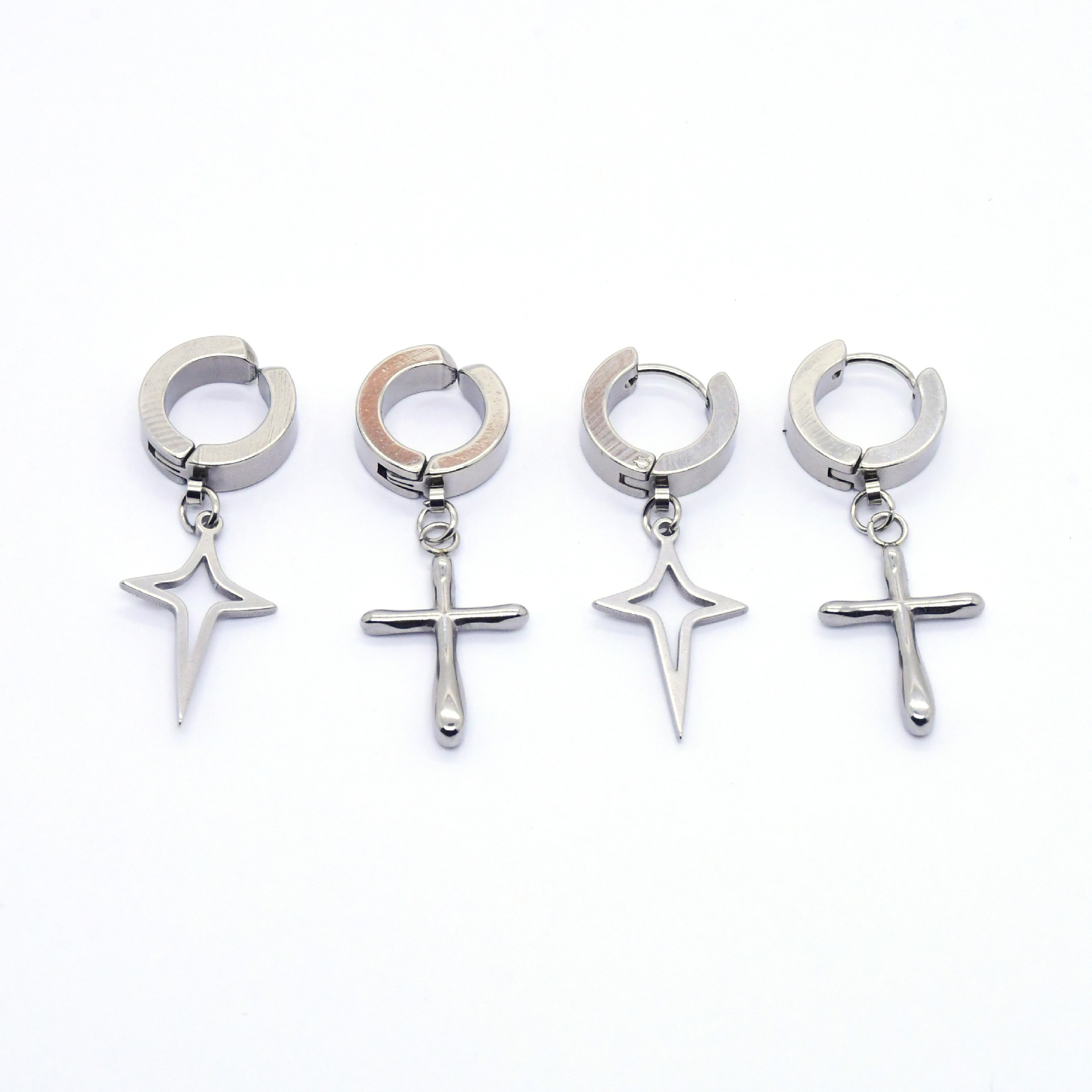 厂家直销 跨境 不锈钢韩式时尚简约四芒星十字架等等形状耳饰饰品