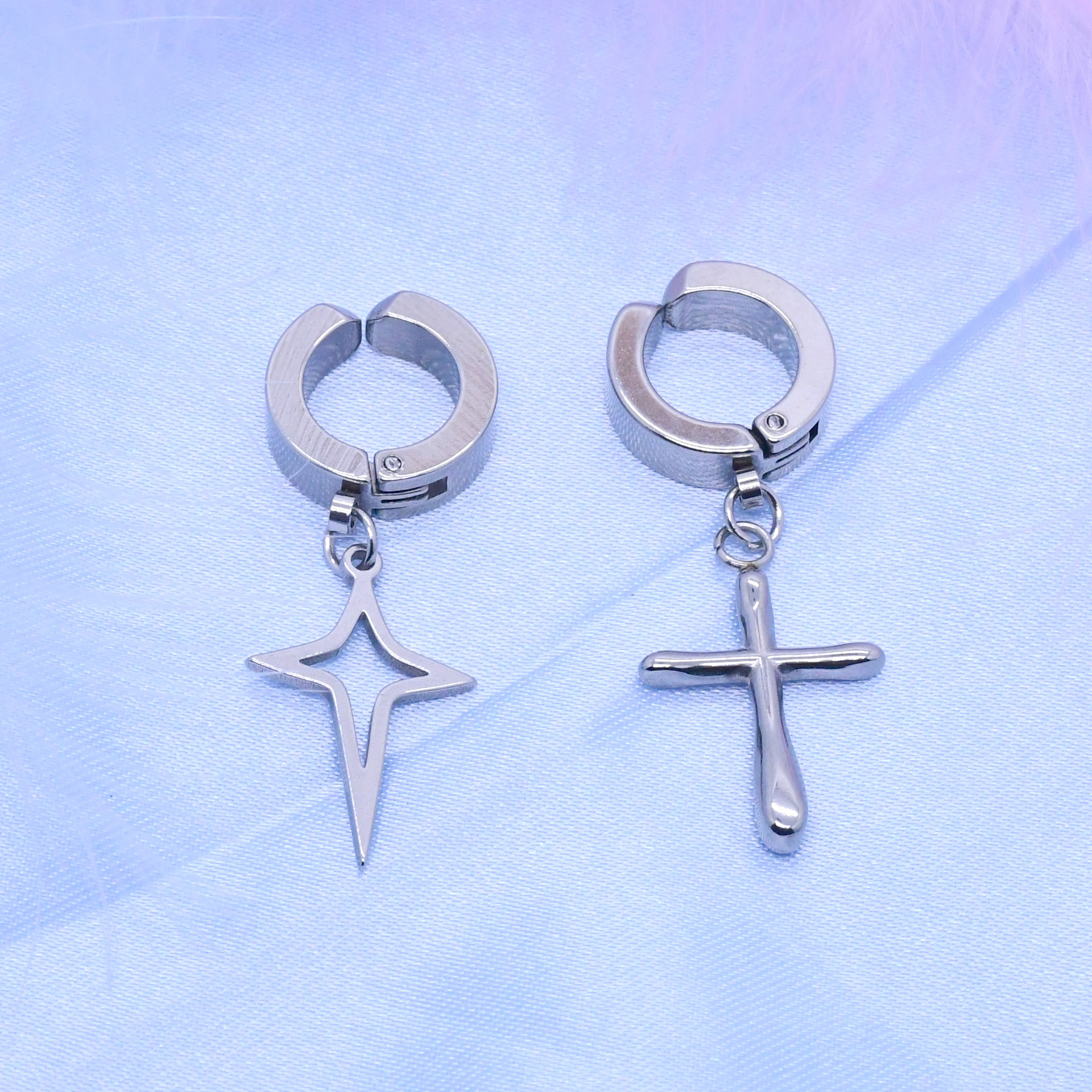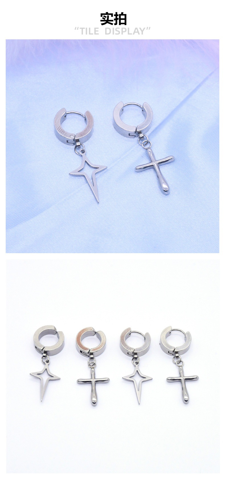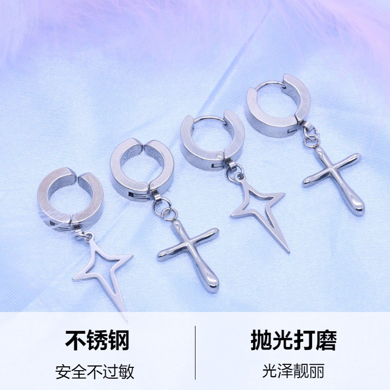 厂家直销 跨境 不锈钢韩式时尚简约四芒星十字架等等形状耳饰饰品 投诉