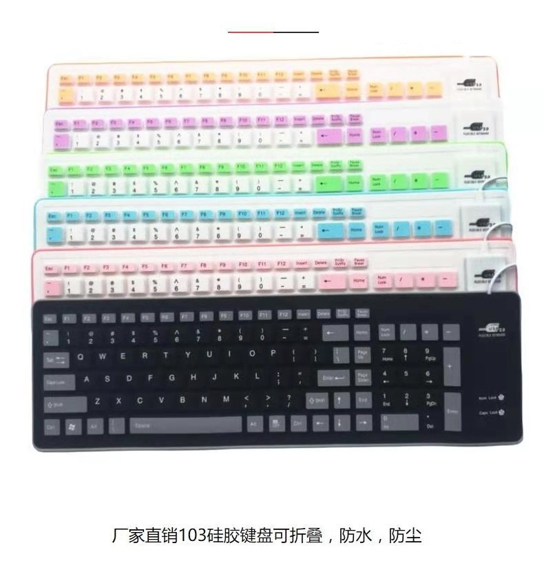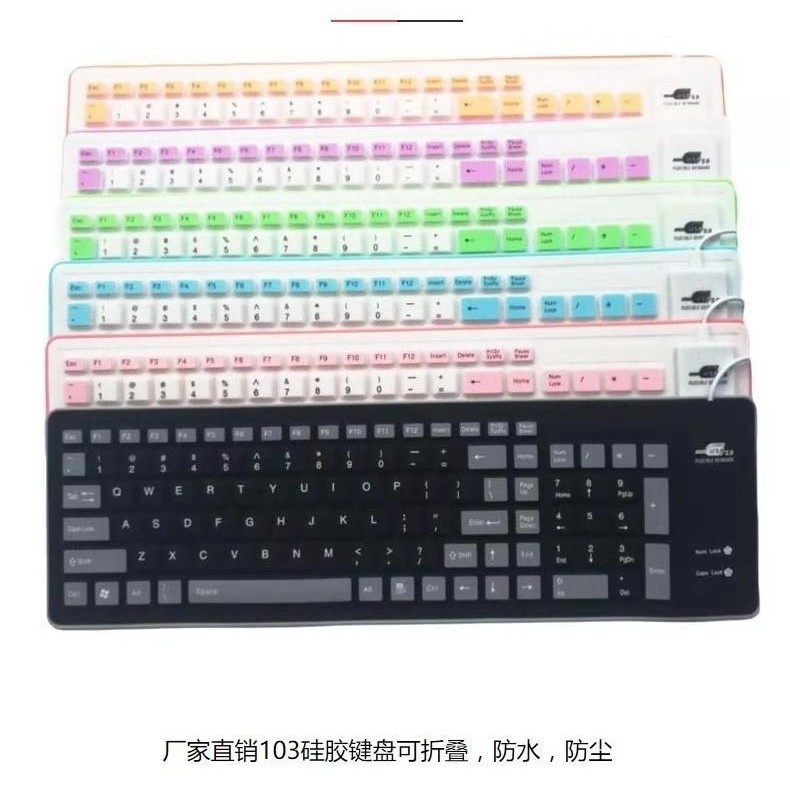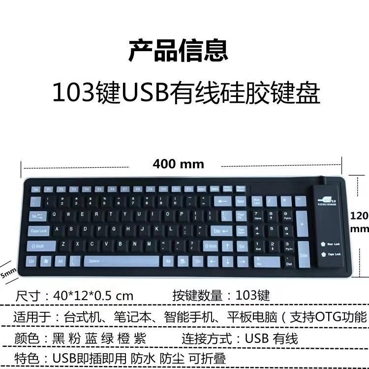 103键硅胶软键盘静音防水防尘有线usb软键盘便携小键盘一件代发