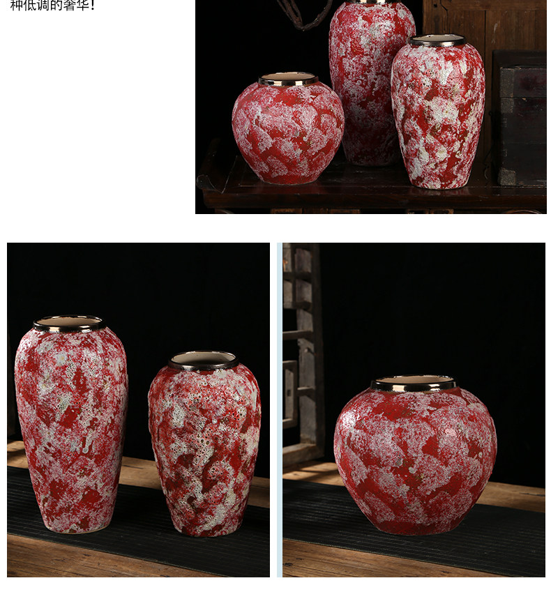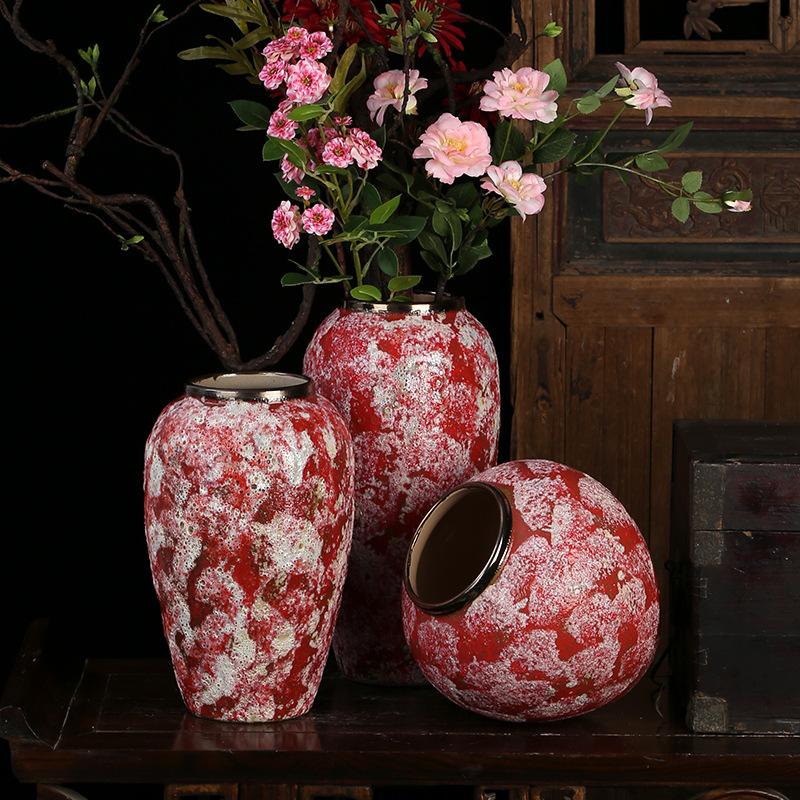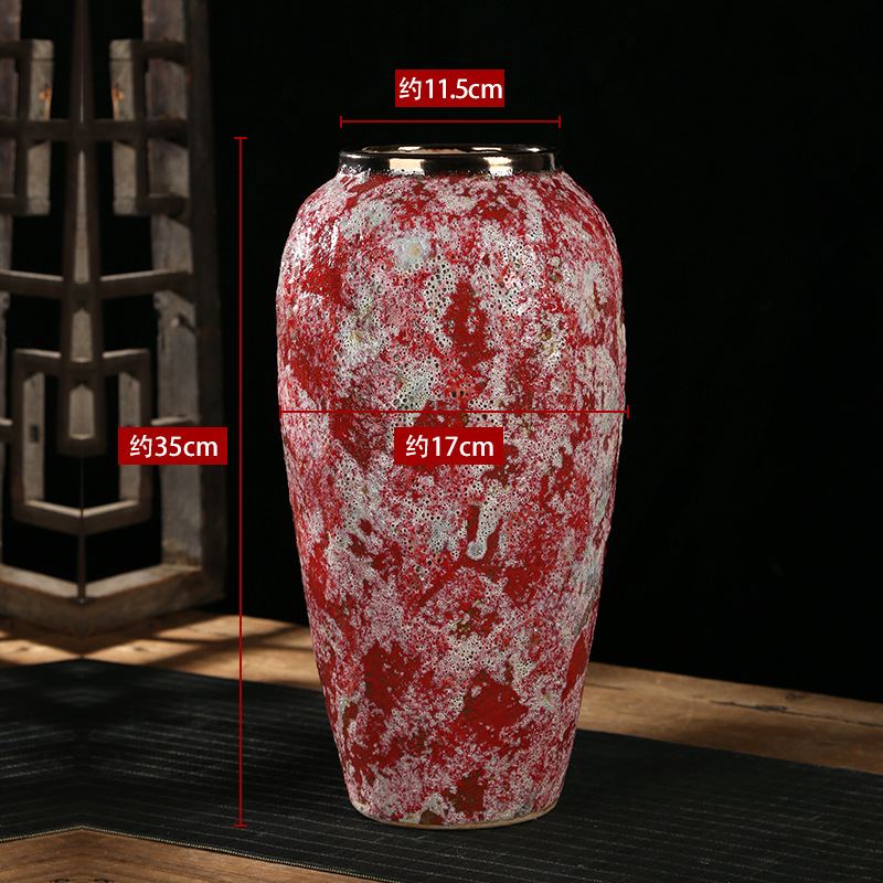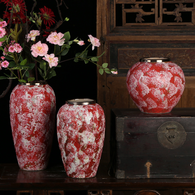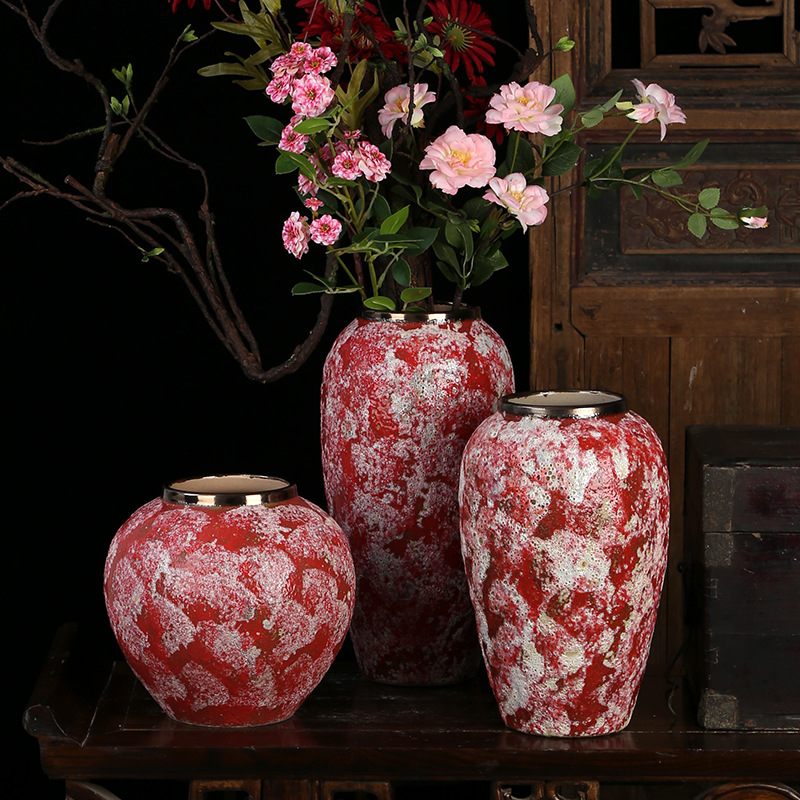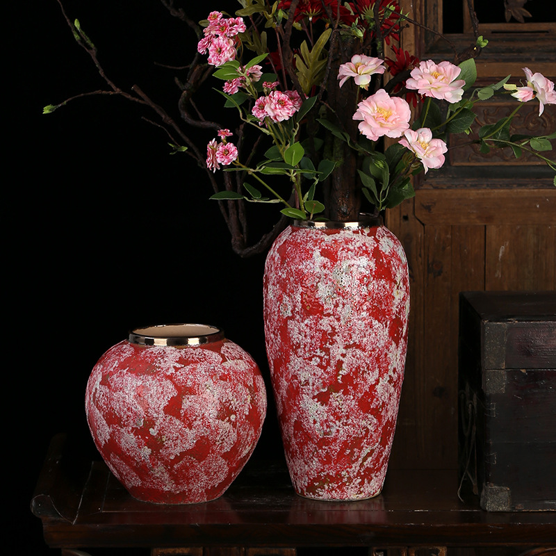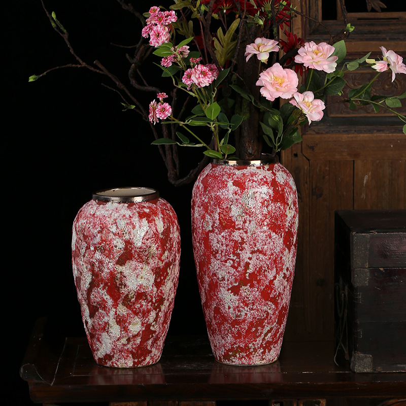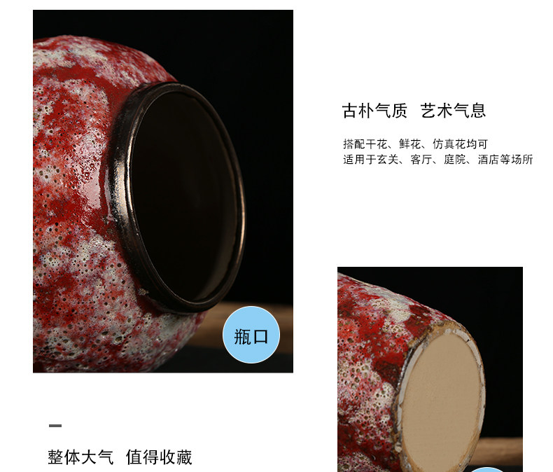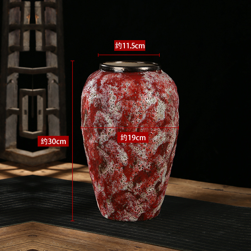 现代简约复古红粗陶插花花瓶新中式摆件小清新手工粗陶罐陶瓷花盆 English | 投诉