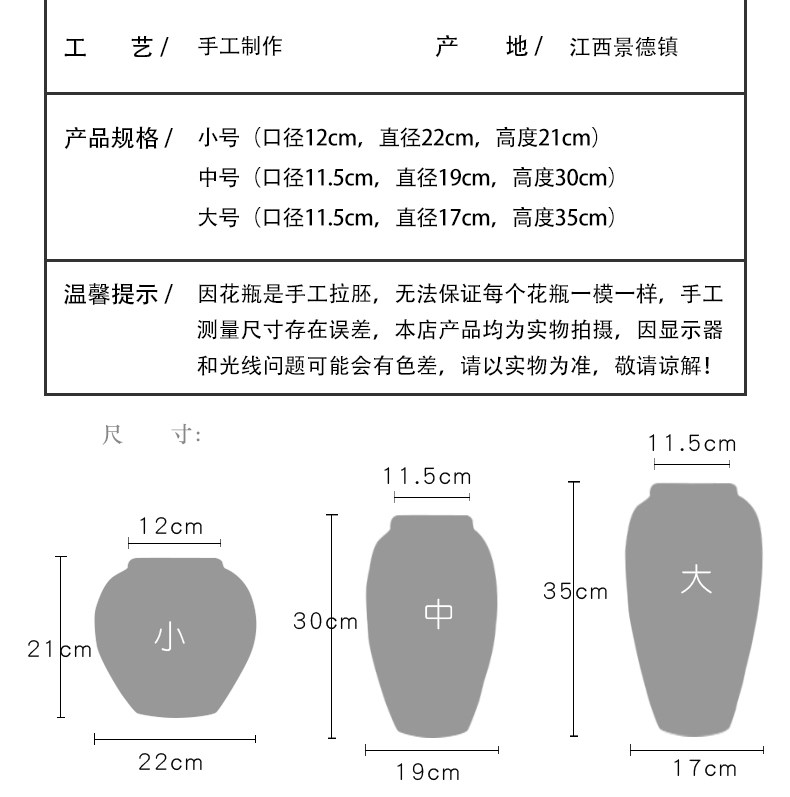 货号: 34 品牌: 子都 材质: 其他 加工定制: 是 表面工艺: 上釉 包装: 纸盒包装 风格: 简约现代 工艺: 纯手工 是否专利货源: 否 尺寸: 小号花瓶,中号花瓶,大号花瓶,花瓶三件套 是否进口: 否 是否跨境出口专供货源: 是 主要销售地区: 欧洲,南美,东南亚,北美 有可授权的自有品牌: 是 是否属于礼品: 否 是否IP授权: 否 摆挂形式: 其他 花器种类: 台面花瓶 材质种类: 陶瓷