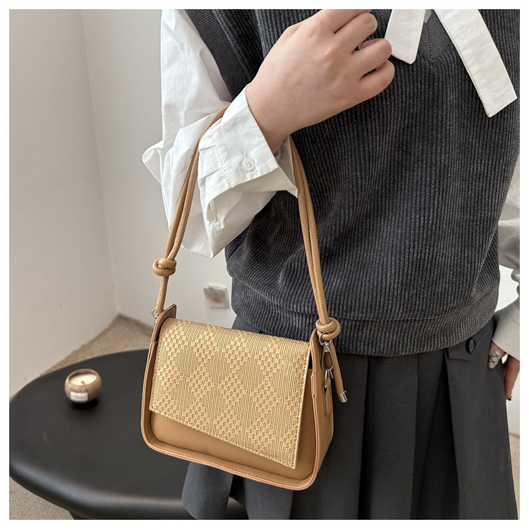 法式休闲纯色2025新款质感气质拼接设计感单肩斜挎手提小方包女