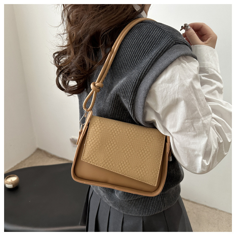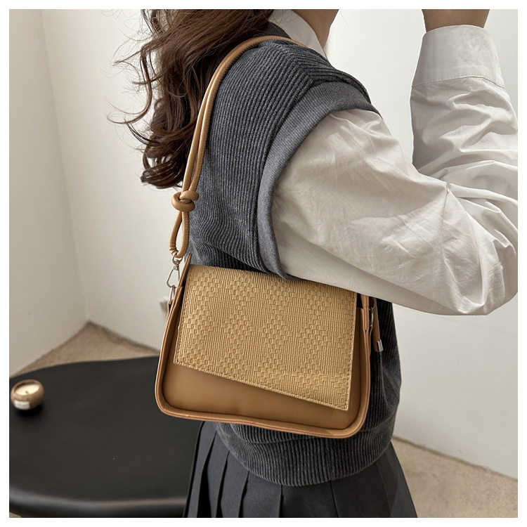 法式休闲纯色2025新款质感气质拼接设计感单肩斜挎手提小方包女 投诉