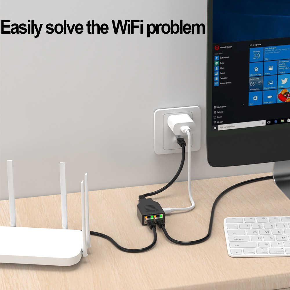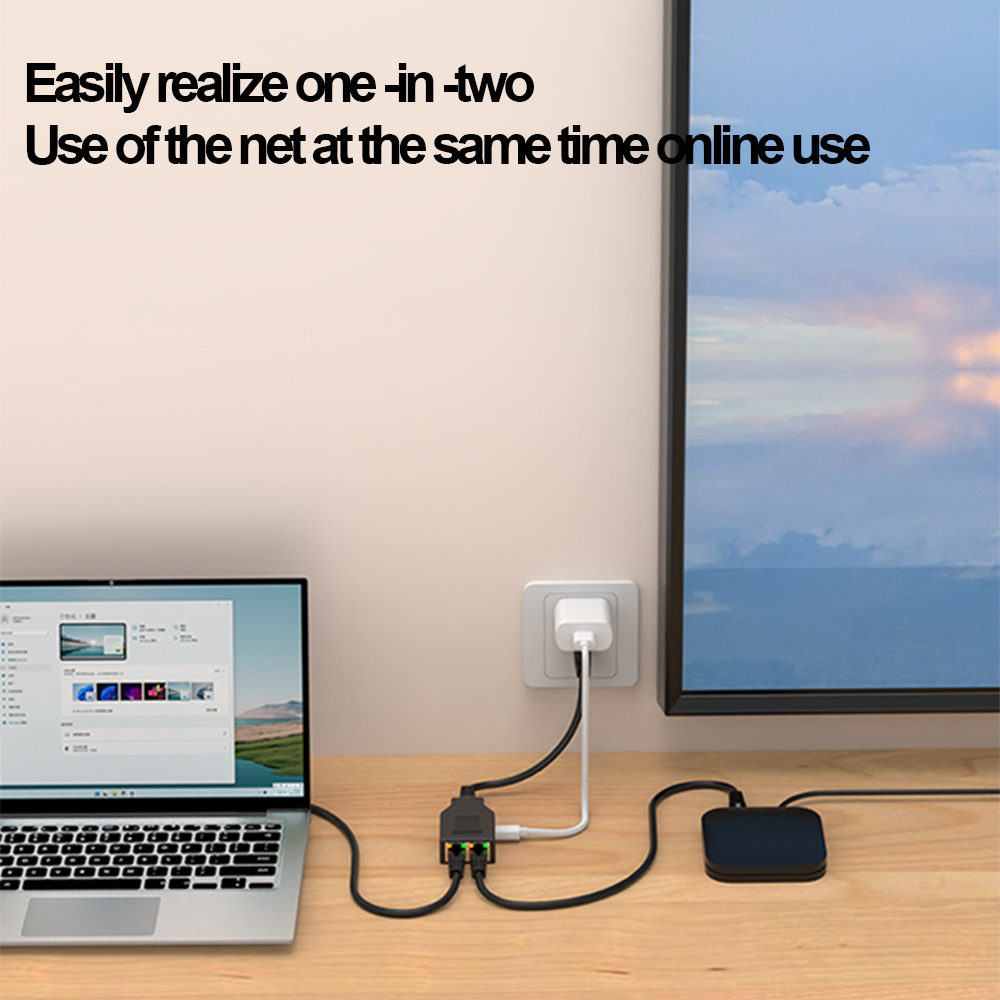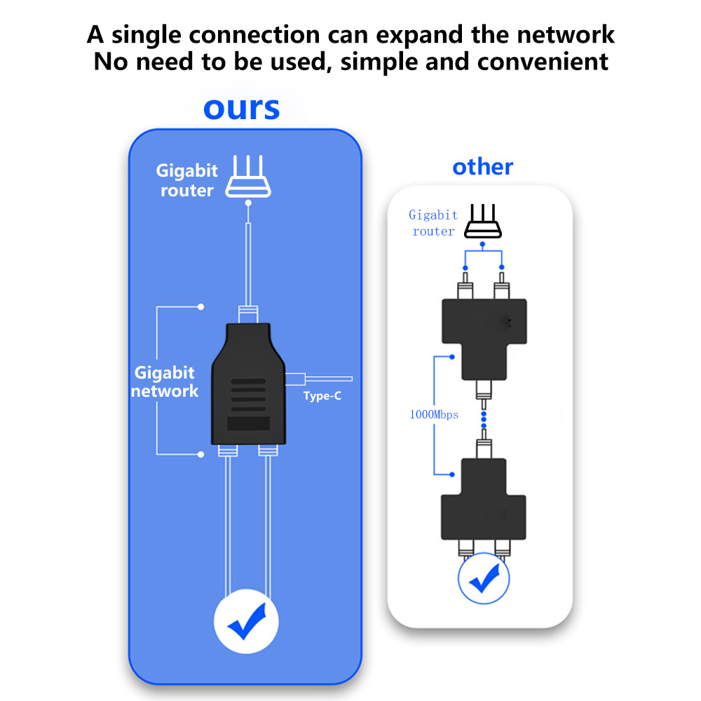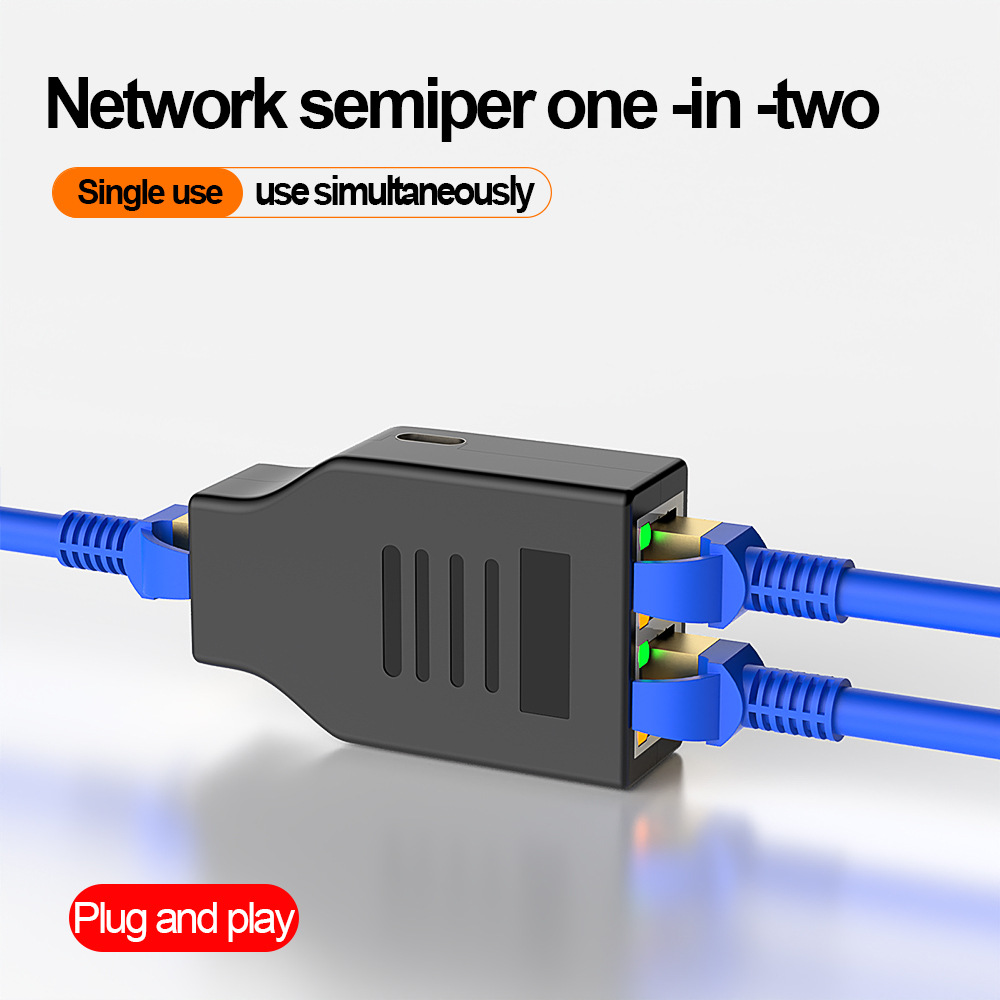 千兆网络接头一分二分配器交换机RJ45网线1进2出网线拆分器1000M