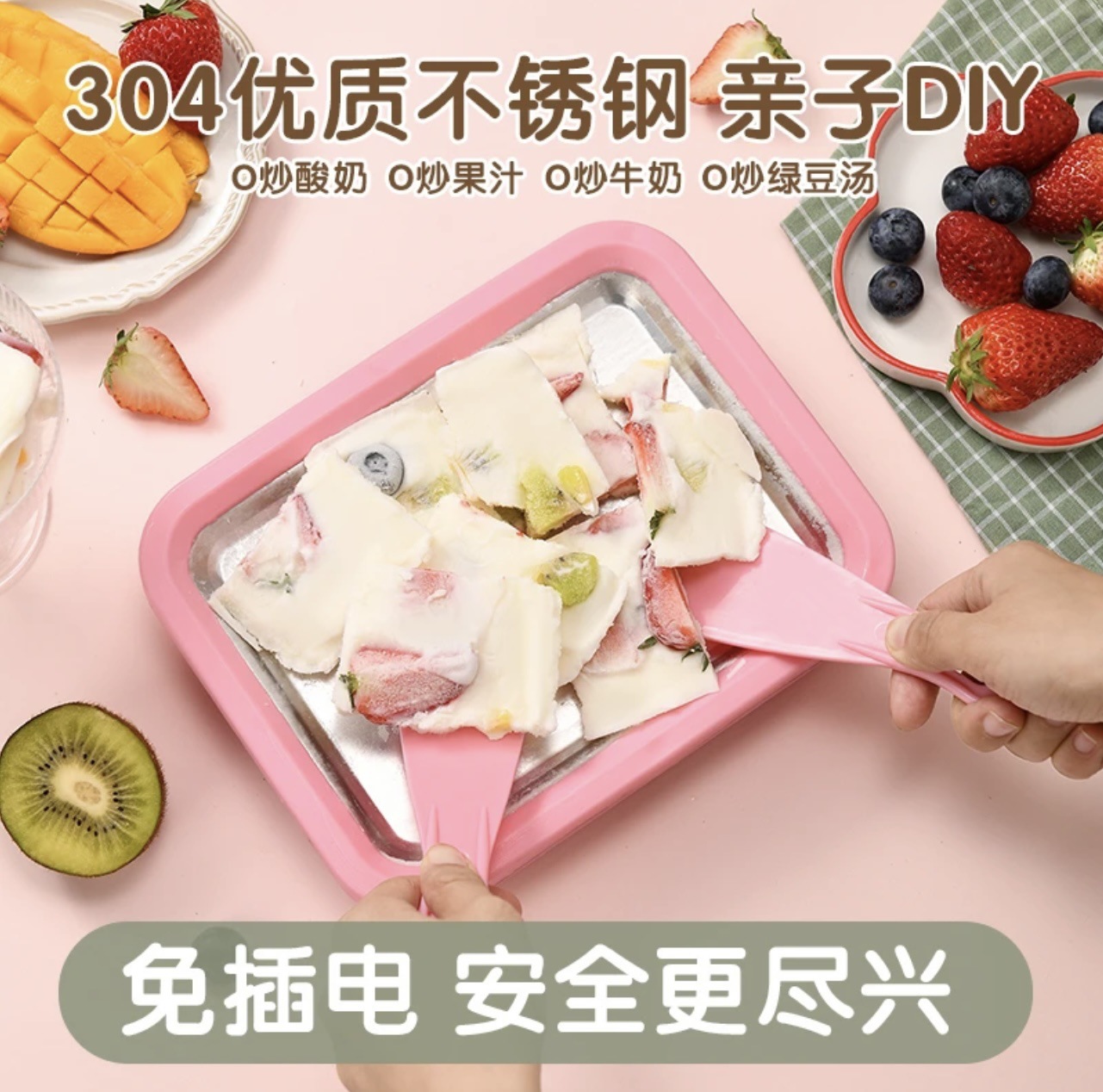 跨境严选炒酸奶机家用小型儿童炒冰机自制diy冰淇淋机免插电沙冰