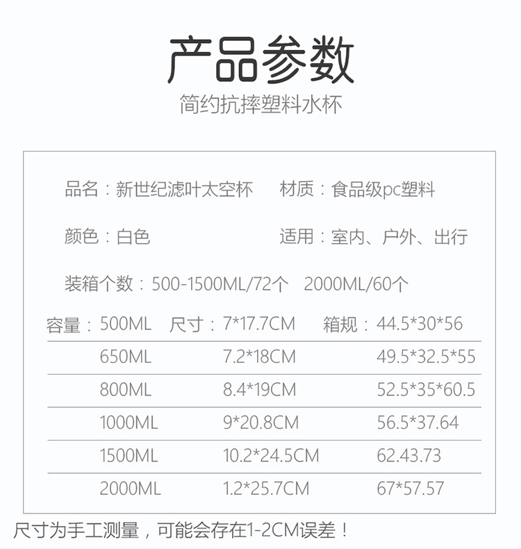 【加厚防摔】超大容量塑料太空杯水杯男女便携ins户外旅游随手杯 投诉