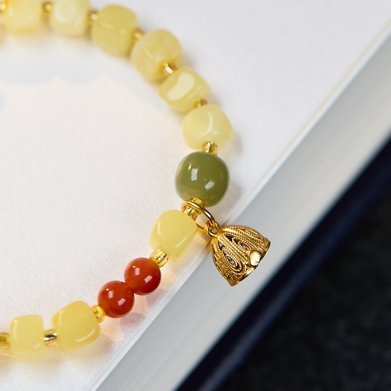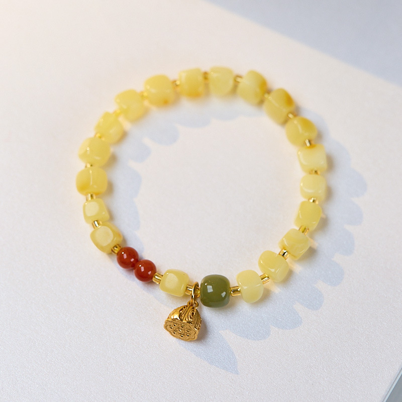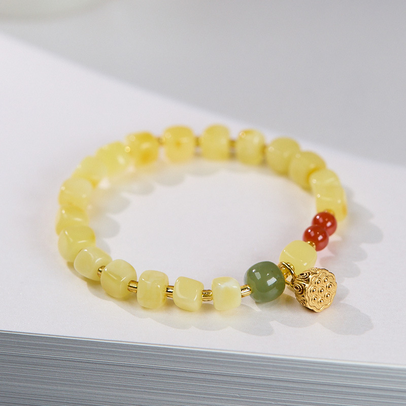 |名称|儿童款 5-6mm蜜蜡方块随形 南红 925银莲蓬手串