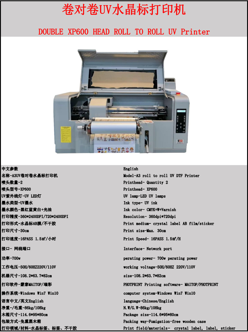 UV打印机30cmA3UV卷对卷水晶标打印机水晶标签标签不干胶打印覆膜 投诉