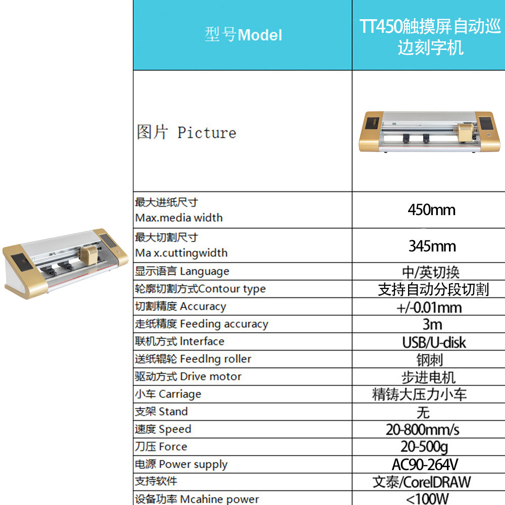 桌面刻字机TT450触摸屏自动巡边车贴热转印PVC标签cuttingplotter 投诉