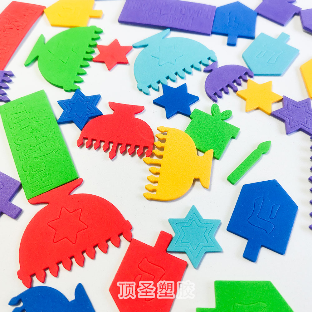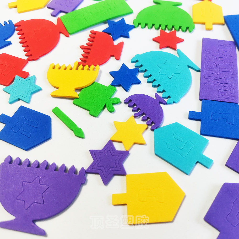 顶圣产品有: 文具礼品:EVA笔套,EVA字母,EVA积木,EVA书本,EVA拼图, EVA笑脸,EVA印章,海绵三菱,海绵圆柱,珍珠棉圆柱。
