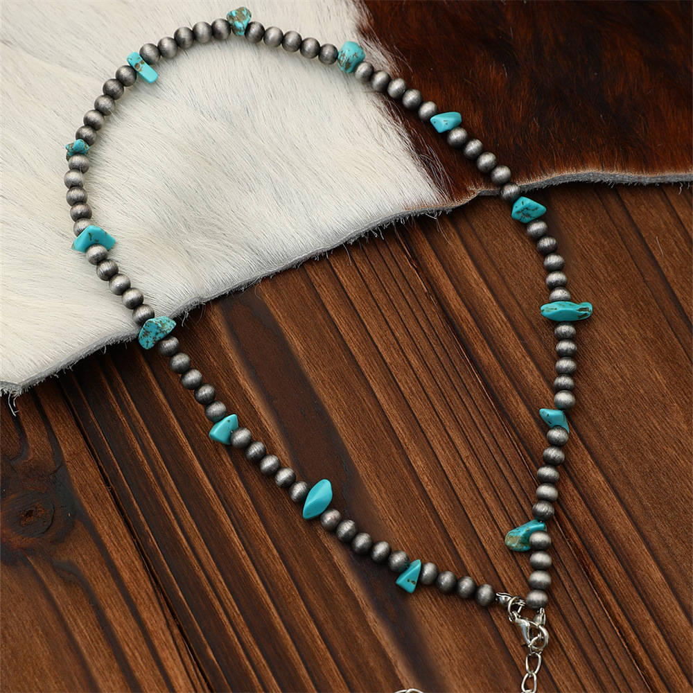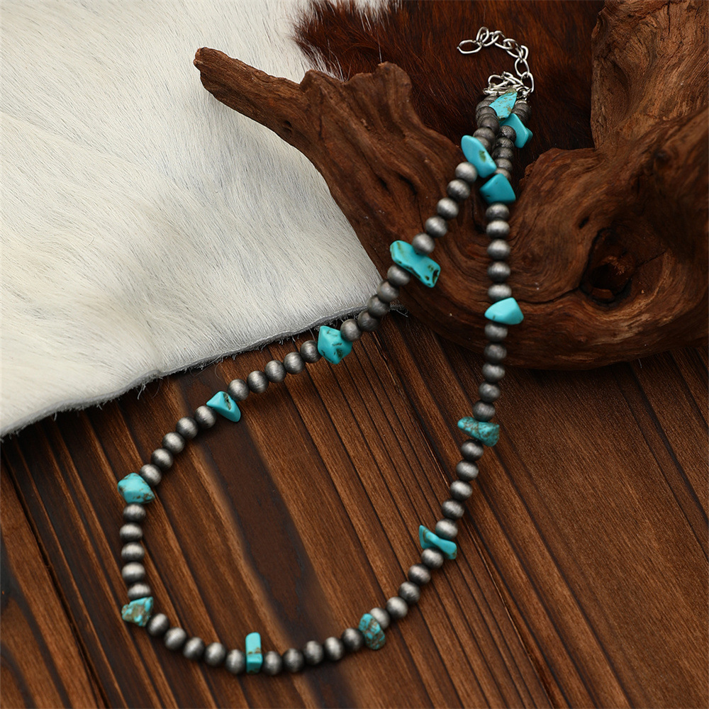 欧美跨境饰品 波西米亚风松石串珠锁骨链百搭民族风绿松石项链1条