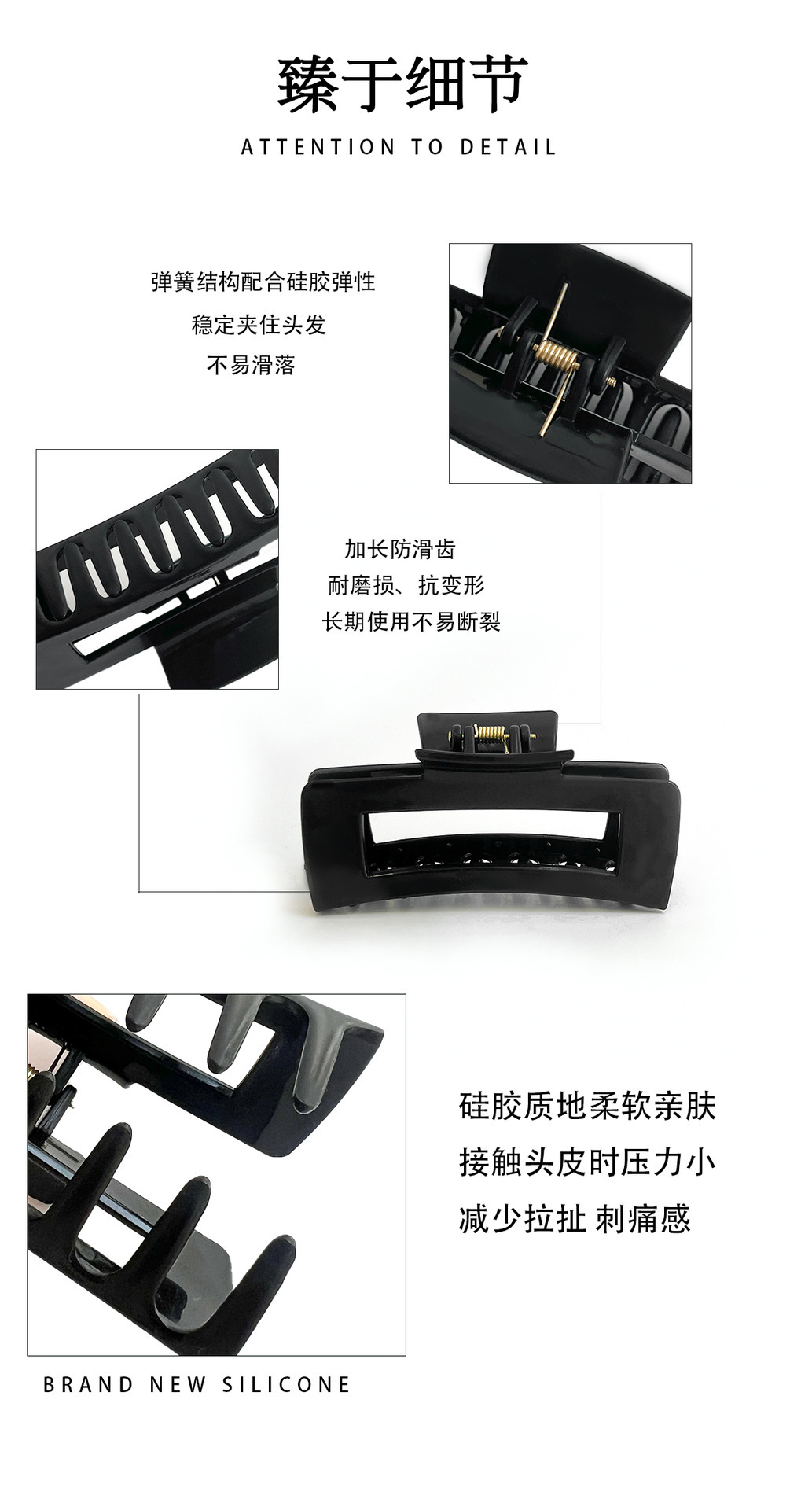 跨境硅胶鲨鱼夹发卡柔软防撞保护后脑夹头发防摔耐用夹子抓夹现货 投诉