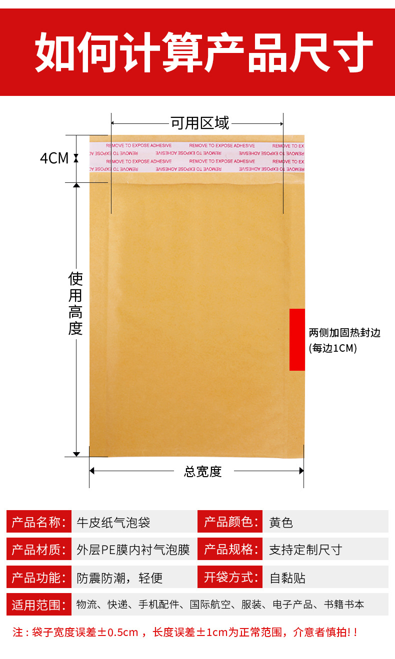 | 黄色牛皮纸气泡袋;13*26+4cm(300个/包) | ¥7500 | 999991件可售 |