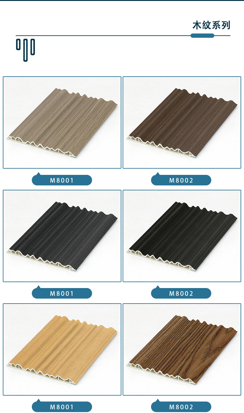 货号: vv1330 产地/品牌: 山东 材质: PVC 规格: 150*14 是否一般纳税人: 否 隔声指数: 1 导热系数: 1 型号: 竹木纤维波浪线板 款式: 无缝 品牌: other