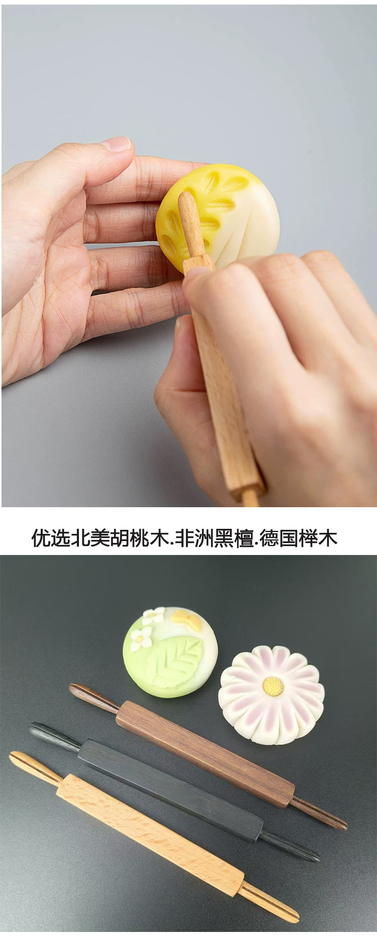 源头厂家茶果子木质筋付丸棒双头推棒 模具 茶点工具和菓子工具 投诉