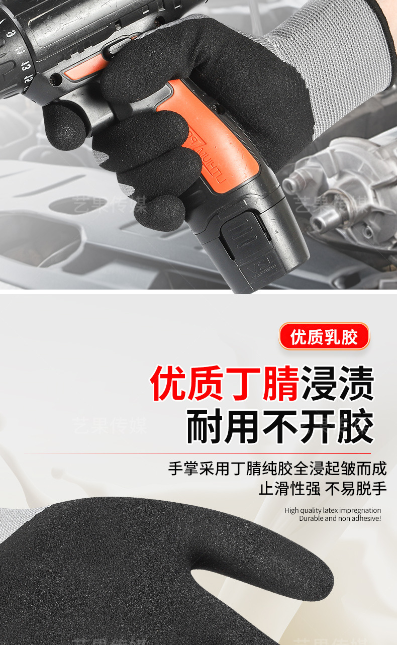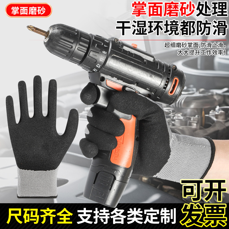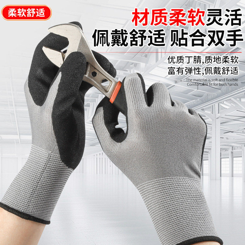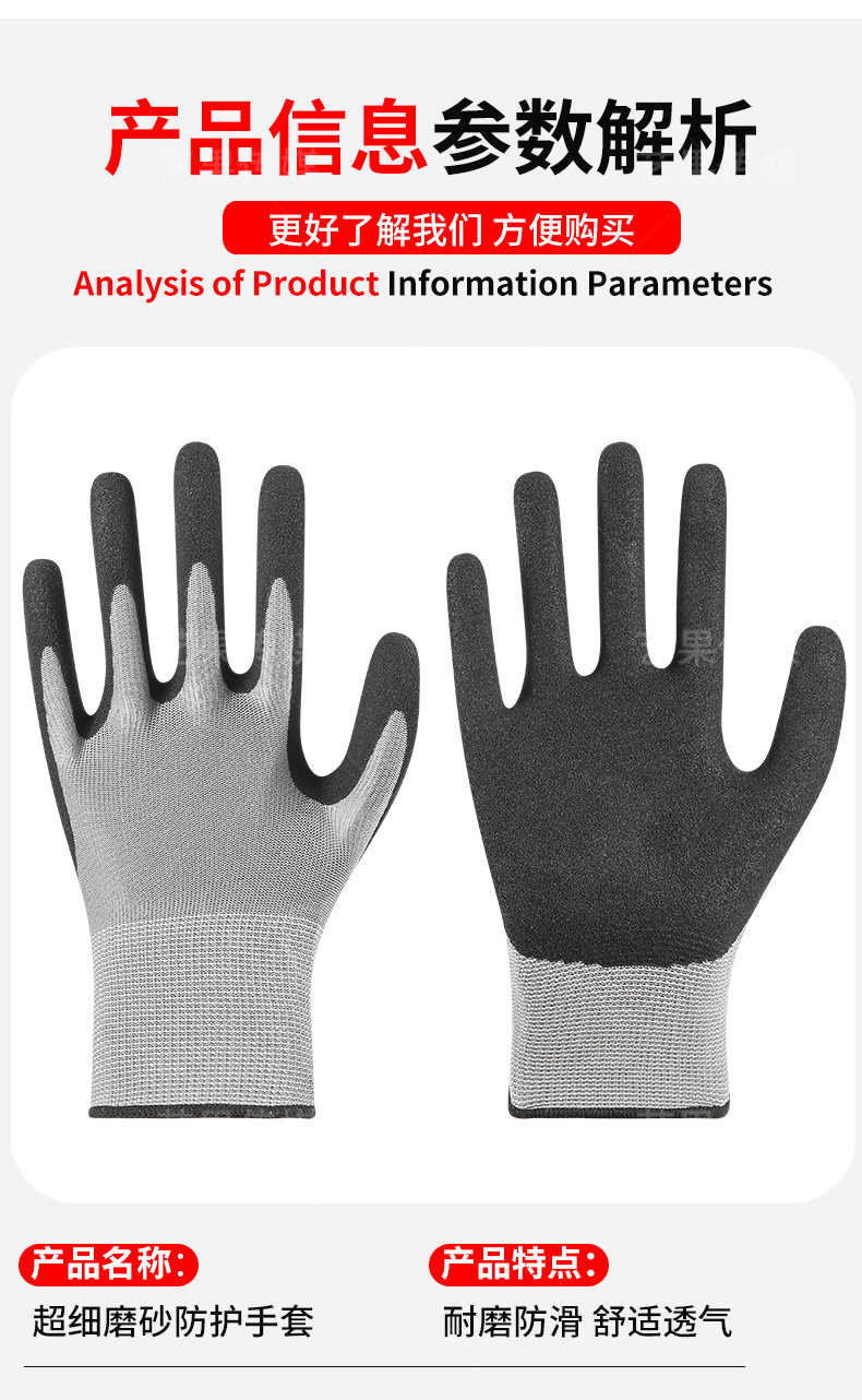 超细磨砂劳保手套轻薄透气工地工作男款耐磨防滑丁腈磨砂防护手套