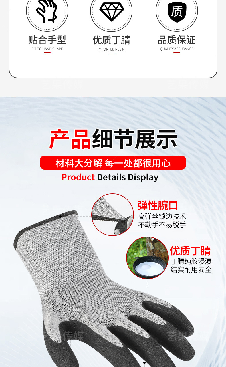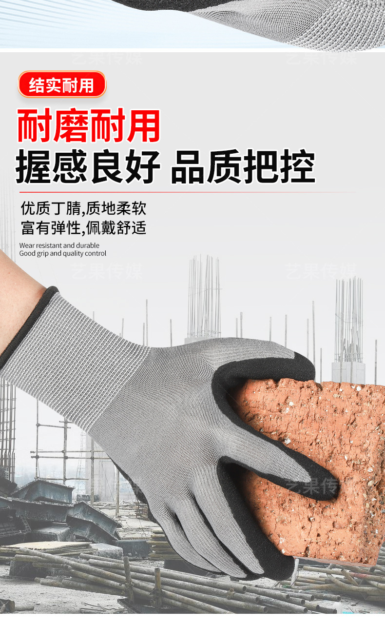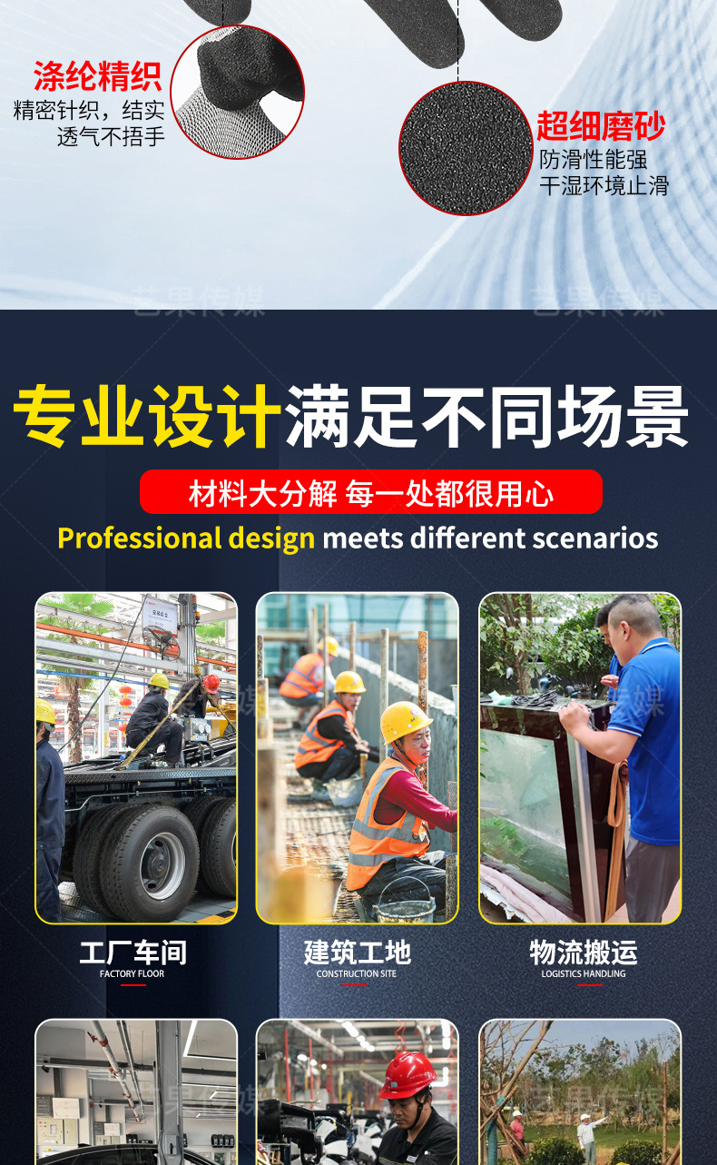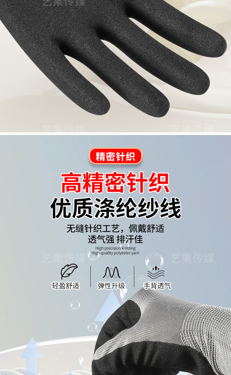 超细磨砂劳保手套轻薄透气工地工作男款耐磨防滑丁腈磨砂防护手套