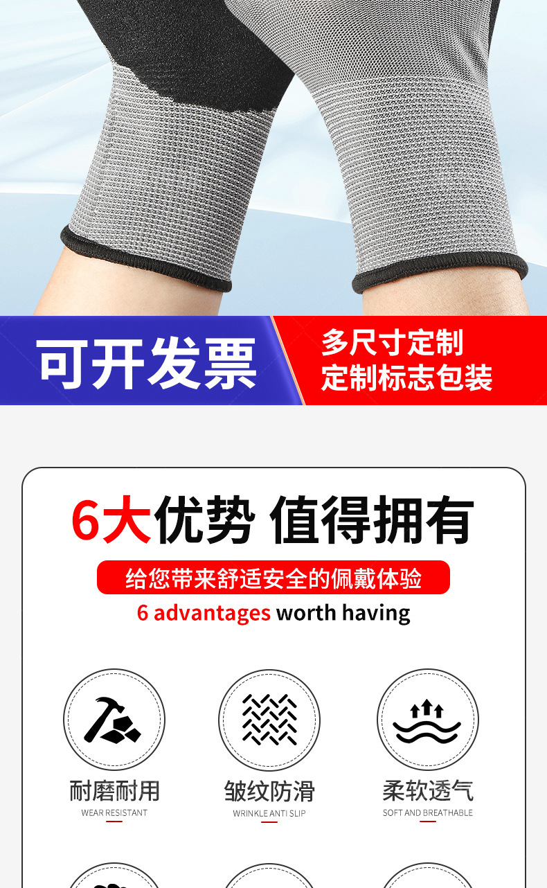超细磨砂劳保手套轻薄透气工地工作男款耐磨防滑丁腈磨砂防护手套 投诉