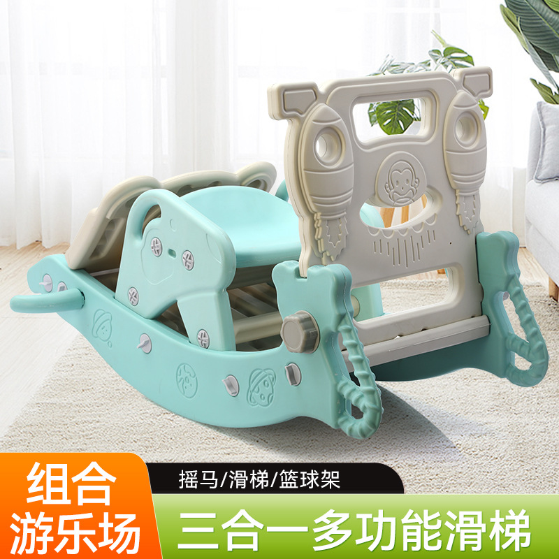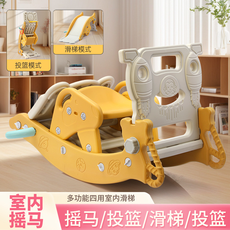 儿童滑梯投篮四合一室内外滑梯摇摇马组合玩具多功能宝宝摇摇马