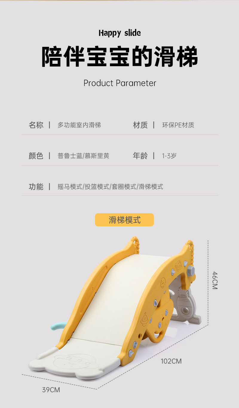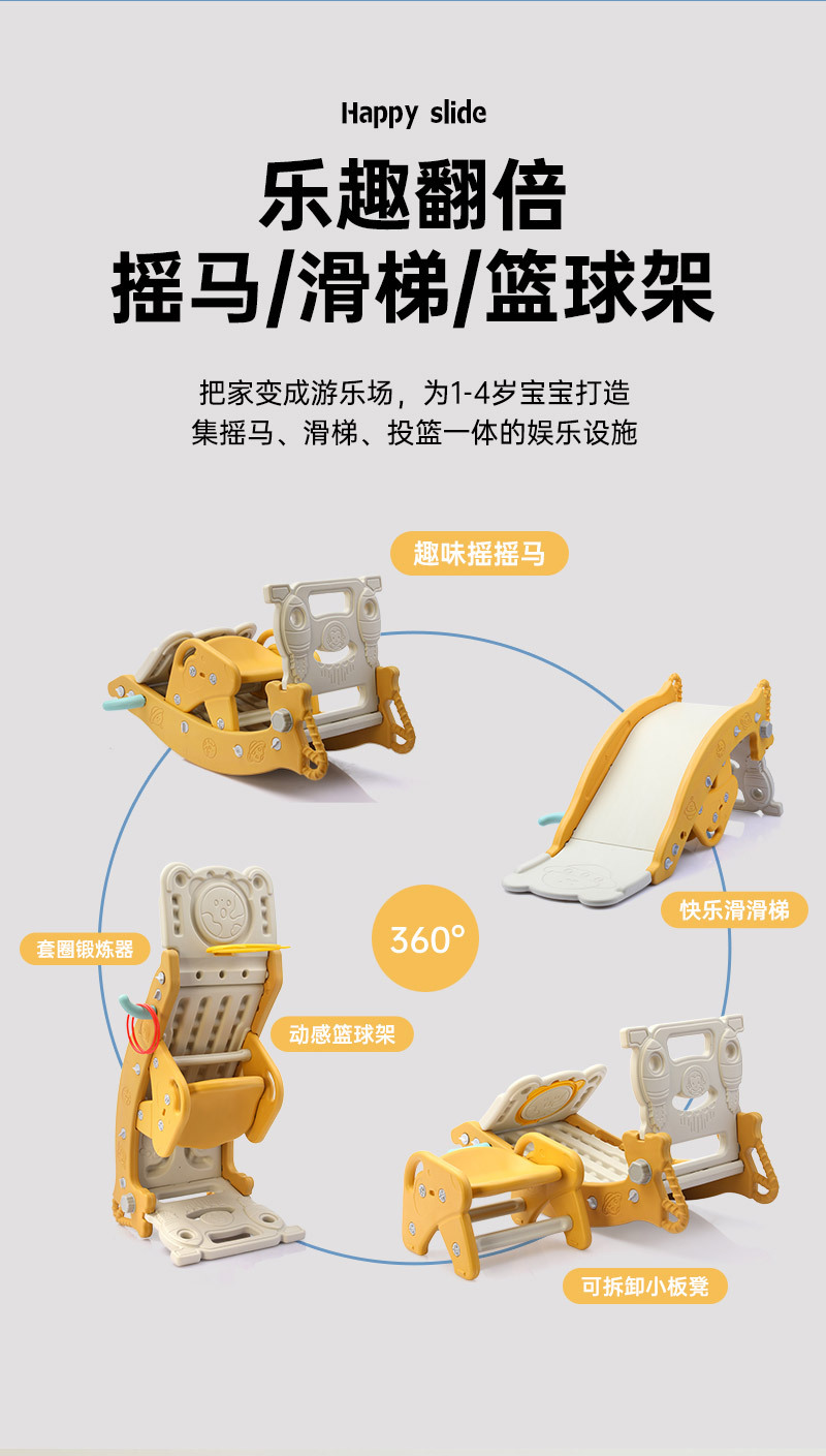 儿童滑梯投篮四合一室内外滑梯摇摇马组合玩具多功能宝宝摇摇马 English | 投诉