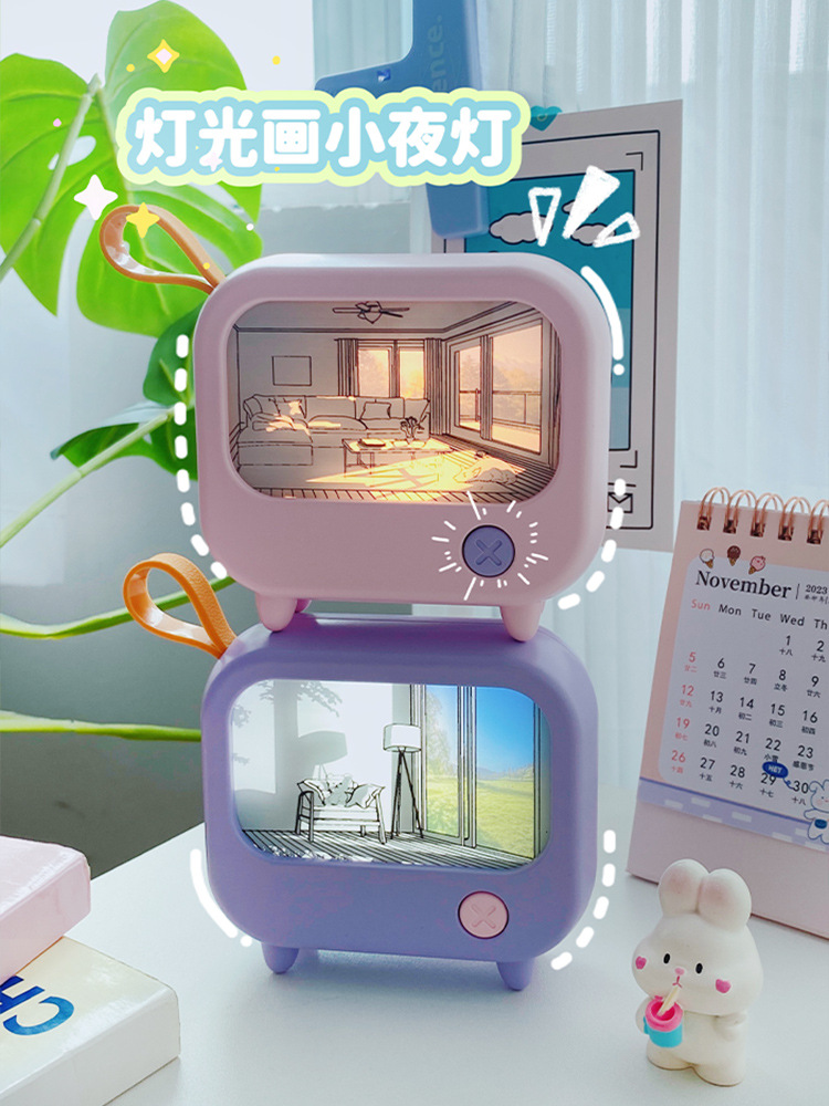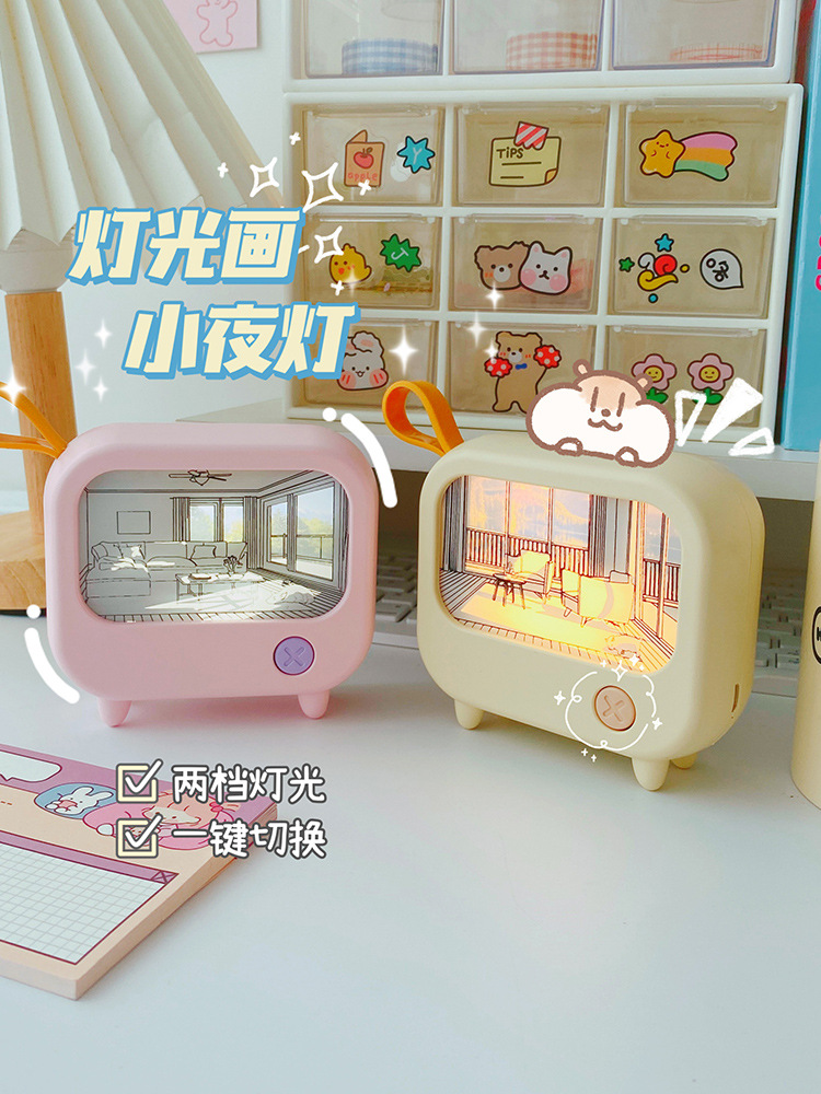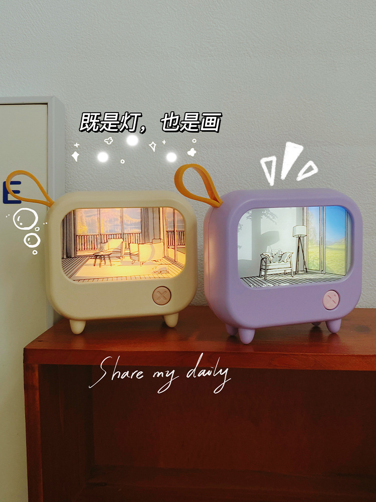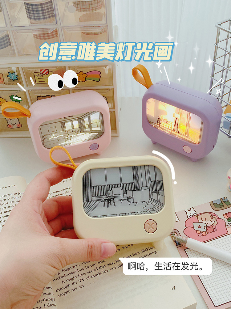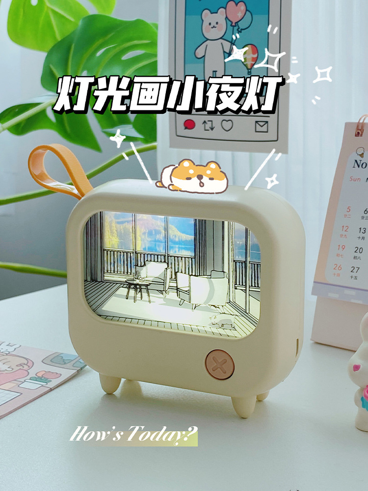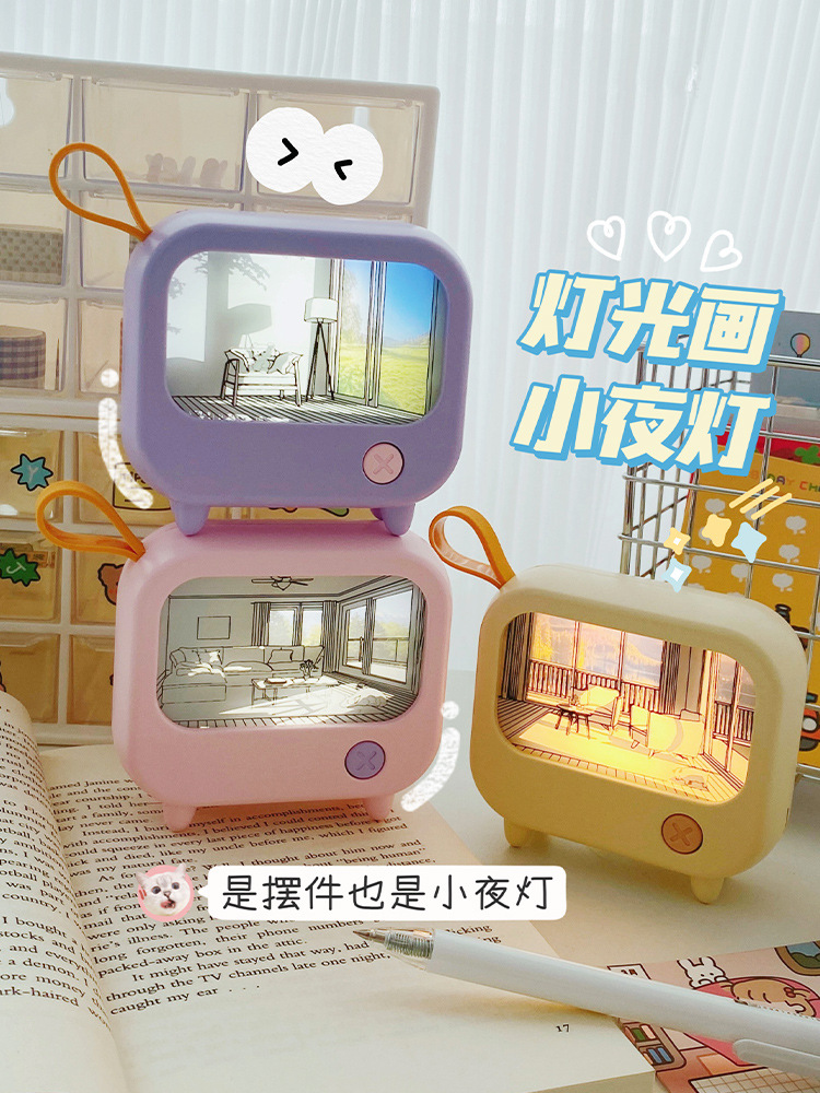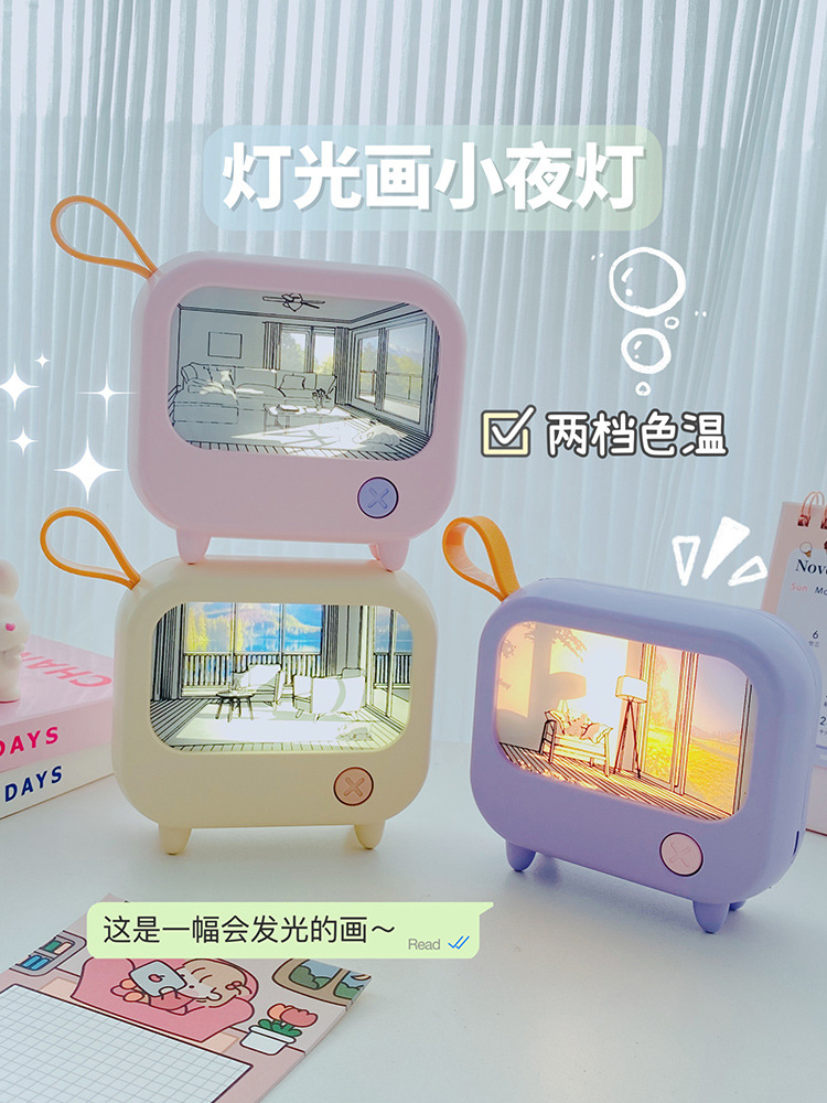 创意灯光画氛围小夜灯高颜值电视机摆件小台灯USB充电可调白暖光