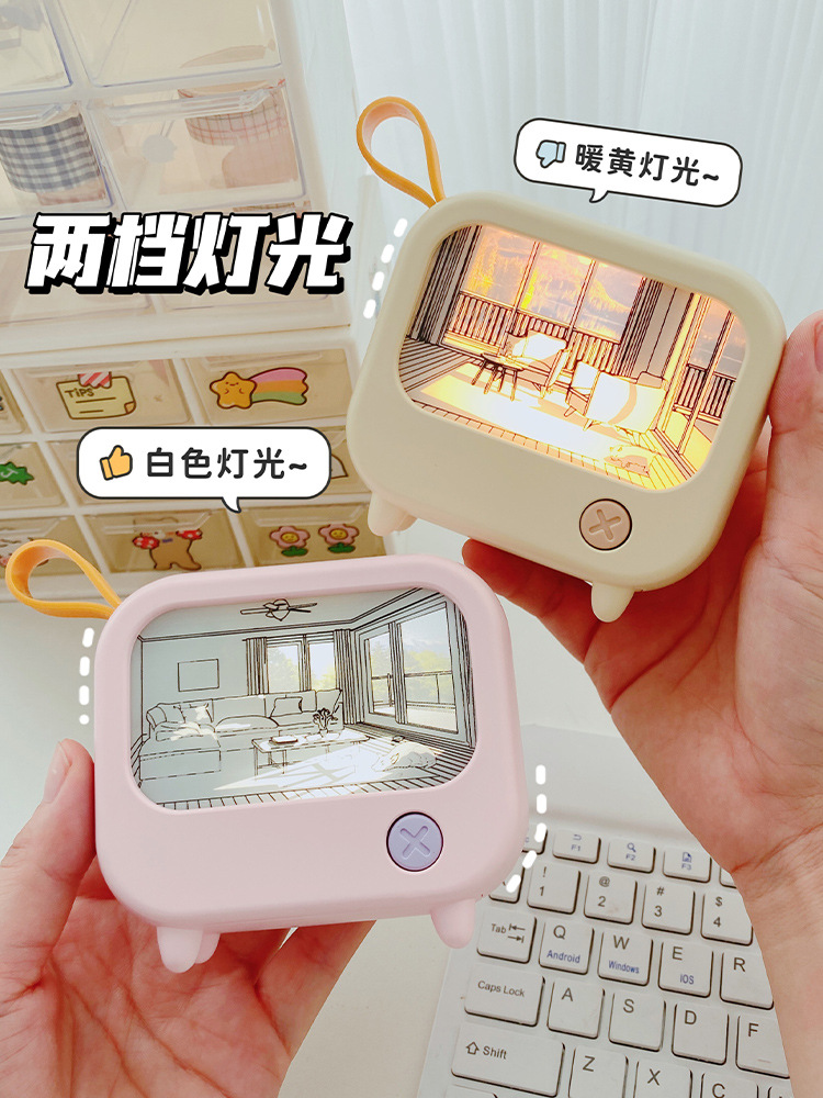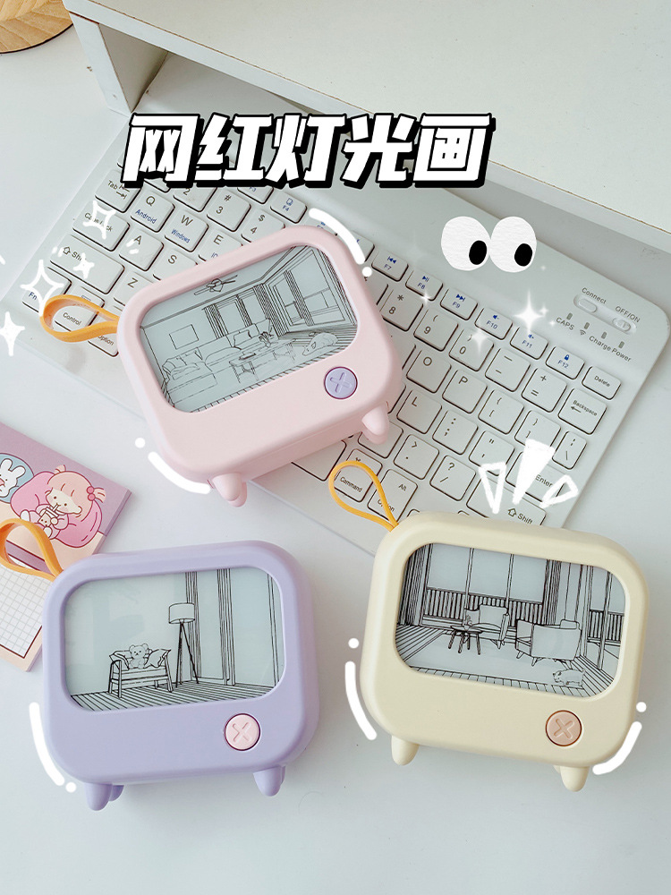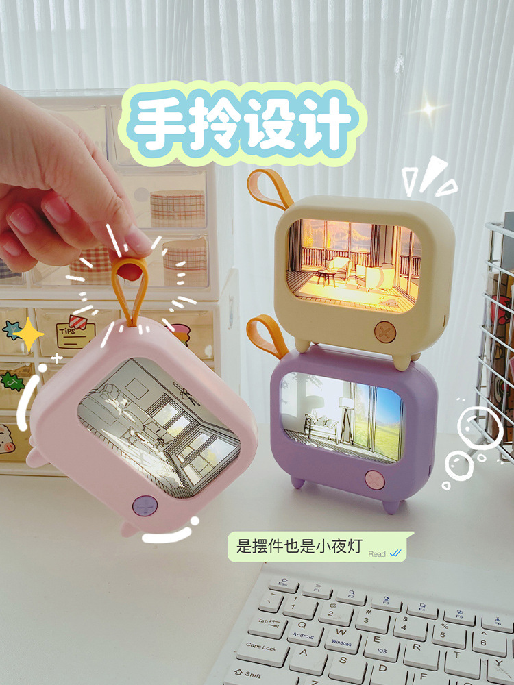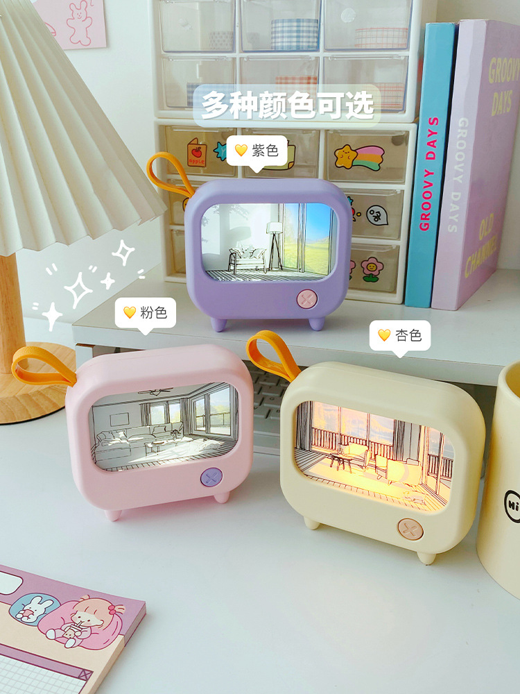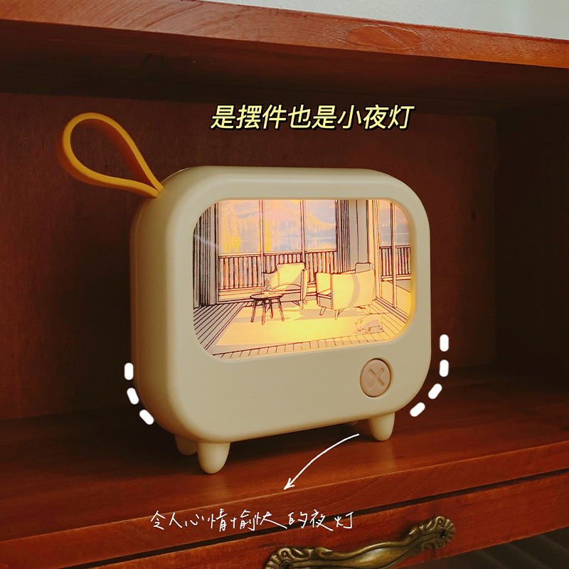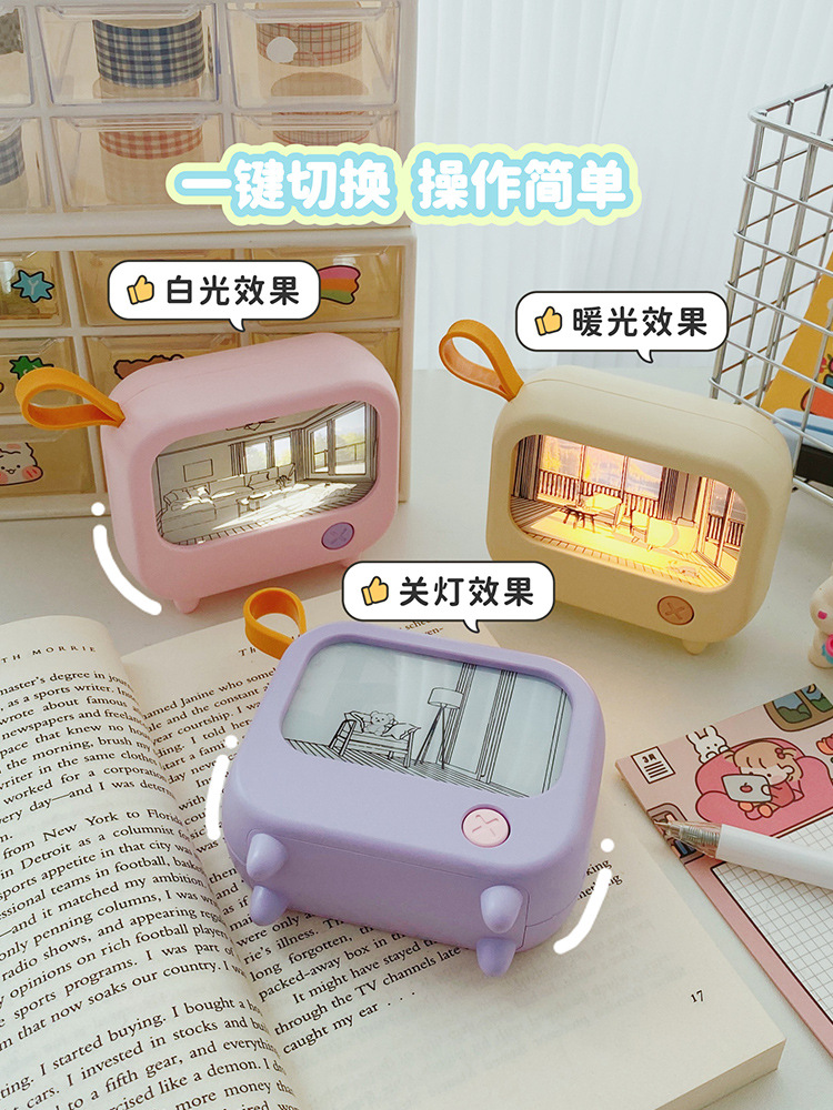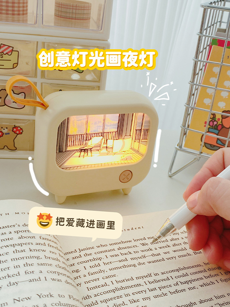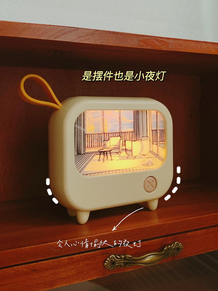 创意灯光画氛围小夜灯高颜值电视机摆件小台灯USB充电可调白暖光
